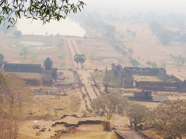 ปราสาทวัดพู แขวงจำปาสัก อยู่ห่างจากกรุงเวียงจันทน์ไปทางทิศใต้ประมาณ๖๗๐กิโลเมตร ซึ่งได้รับการรับรองเป็นมรดกโลกเมื่อปี๒๐๑๑ (Photo: thanhnien) |