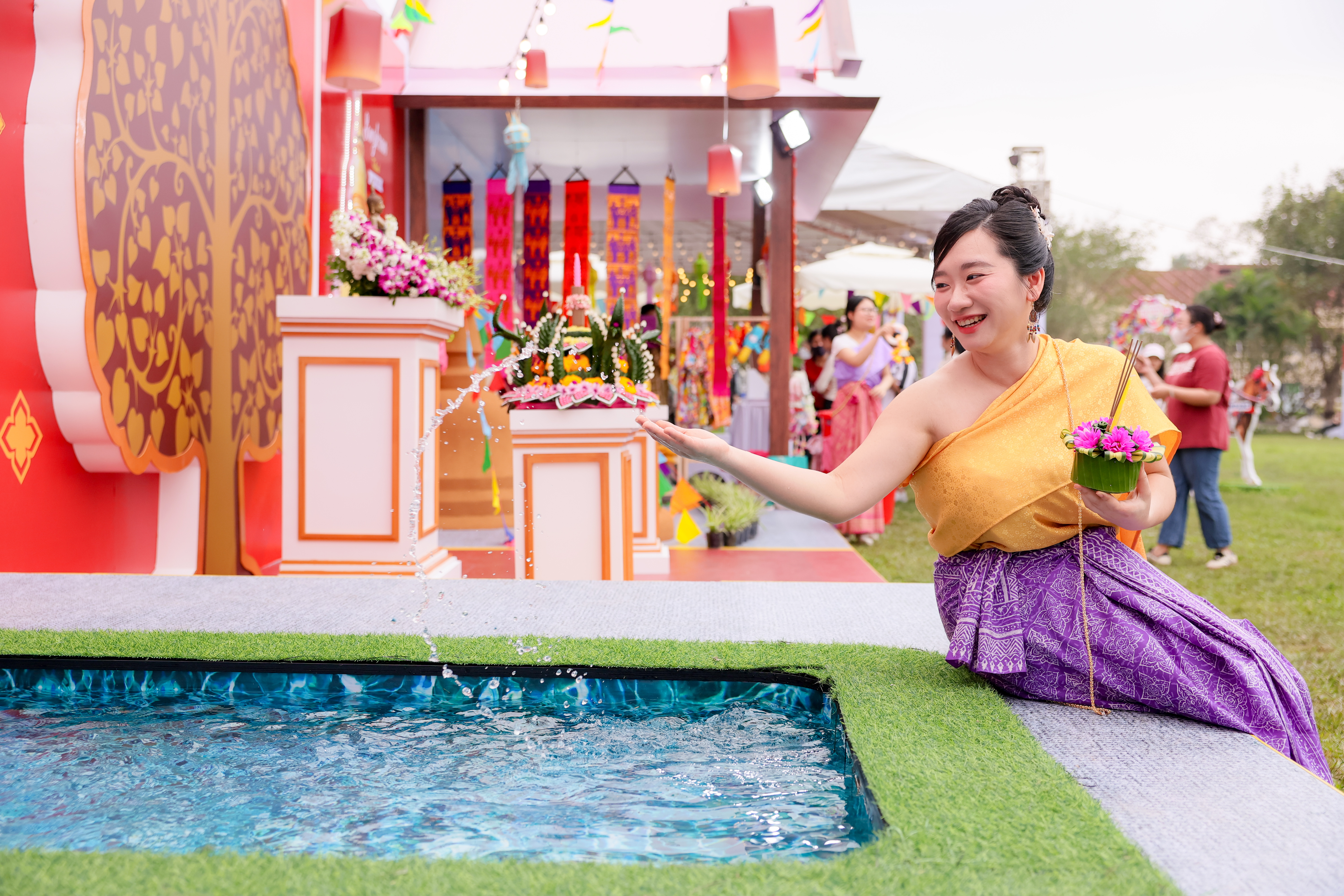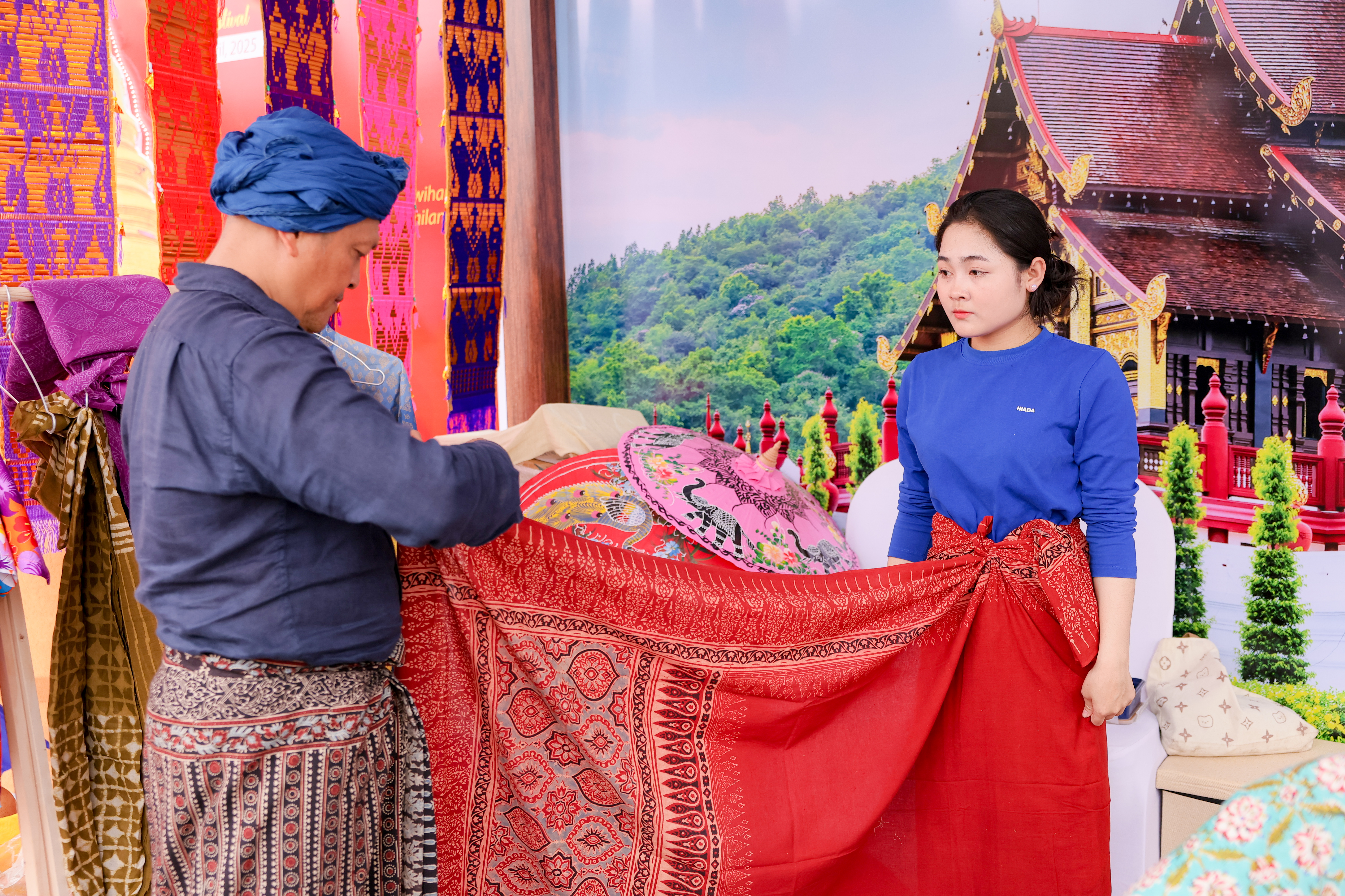ภายในงาน ผู้เข้าชมจะมีโอกาสลองสวมชุดเสื้อผ้าพื้นเมืองของไทย |