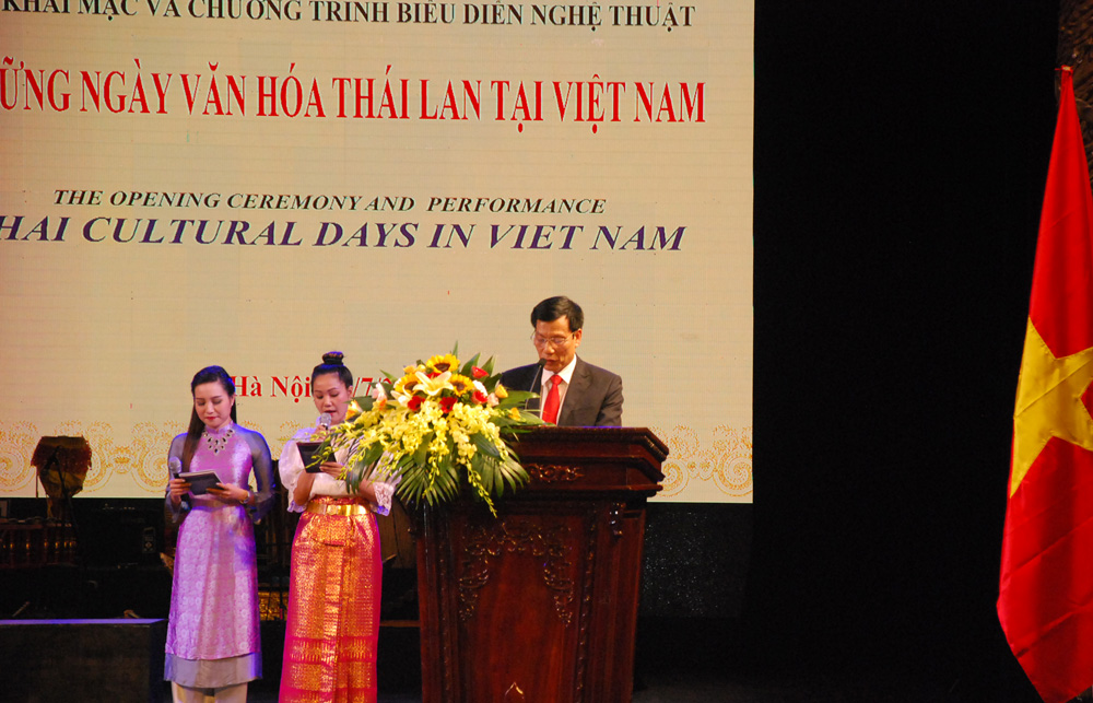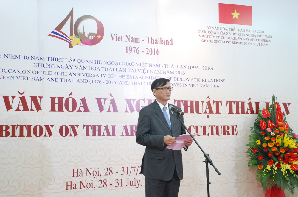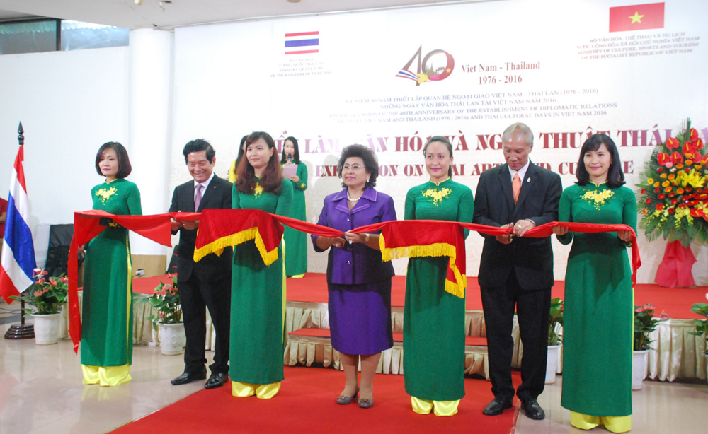 (VOVworld) – ในโอกาสฉลองครบรอบ 40 ปีการสถาปนาความสัมพันธ์ทางการทูตระหว่างเวียดนามกับไทย บ่ายวันที่ 28 กรกฎาคม ณ กรุงฮานอย กระทรวงวัฒนธรรม การกีฬาและการท่องเที่ยวเวียดนามได้ร่วมกับกระทรวงวัฒนธรรมไทยและสถานทูตไทยประจำเวียดนามเปิดงานแสดงวัฒนธรรมและศิลปะไทย โดยมีรัฐมนตรีช่วยว่าการกระทรวงวัฒนธรรมไทย รัฐมนตรีช่วยว่าการกระทรวงวัฒนธรรม การกีฬาและการท่องเที่ยวเวียดนาม พร้อมตัวแทนของสถานทูตประเทศต่างๆประจำเวียดนาม สื่อมวลชน และชาวเวียดนามเข้าร่วม ทั้งนี้ ในงานวันวัฒนธรรมไทยในเวียดนามจะมีการจัดกิจกรรมต่างๆ เช่น รายการศิลปะ การฉายภาพยนตร์ การสัมมนา และกิจกรรมแลกเปลี่ยนวัฒนธรรมต่างๆ โดยรายการศิลปะจะมีขึ้น ณ โรงละครฮานอยในค่ำวันที่ 28 กรกฎาคมและที่หอวัฒนธรรมแรงงานเวียดนาม – ญี่ปุ่น ที่จังหวัดกว๋างนิง ในวันที่ 30 กรกฎาคมนี้ งานวันวัฒนธรรมไทยในเวียดนามจะจัดไปจนถึงวันที่ 31 กรกฎาคม.