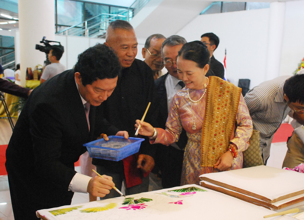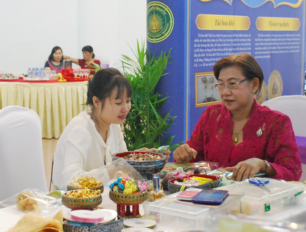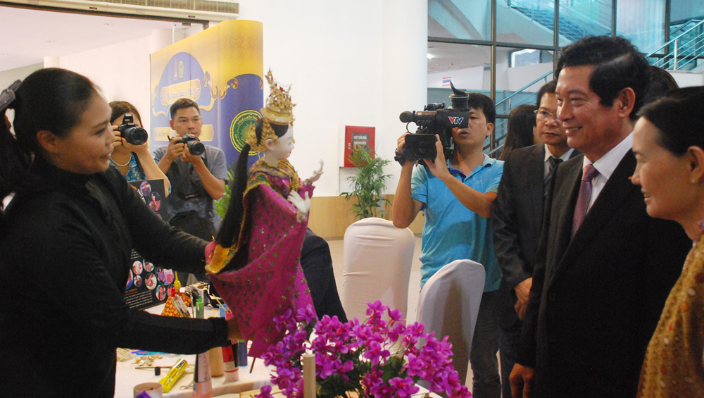 รัฐมนตรีช่วยว่าการกระทรวงวัฒนธรรม การกีฬาและการท่องเที่ยวเวียดนาม หวิ่ง หวิง อ๊าย (คนที่ 1 จากซ้าย) และรัฐมนตรีช่วยว่าการกระทรวงวัฒนธรรมไทย (กลาง) ตัดริบบิ้นเปิดงาน