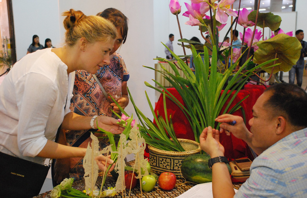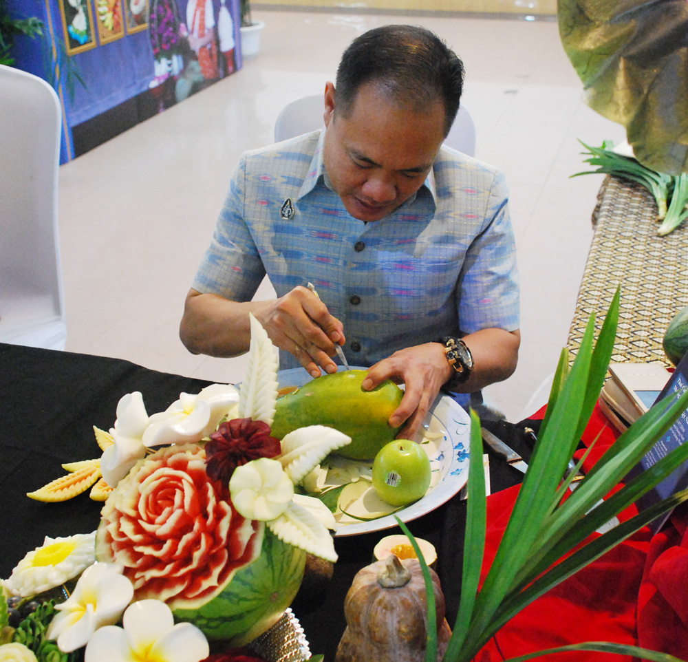 ชาวต่างประเทศให้ความสนใจวิธีการแกะสลักผลไม้ไทย