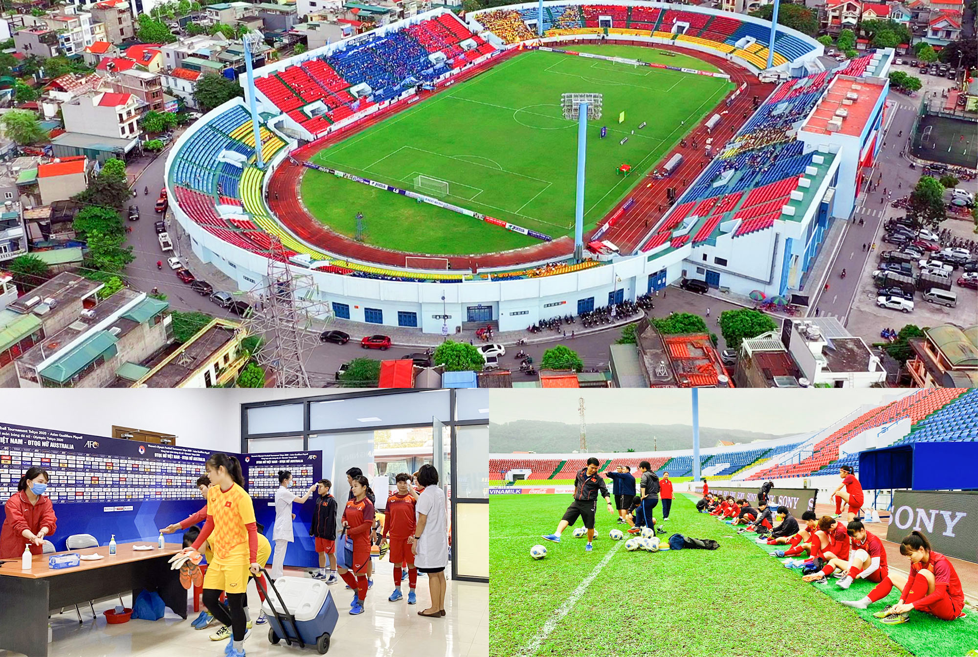 สนามกีฬา เกิ๋มฝา สำหรับการแข่งขันกีฬาฟุตบอลหญิง (ภาพจาก baoquangninh.com.vn) |