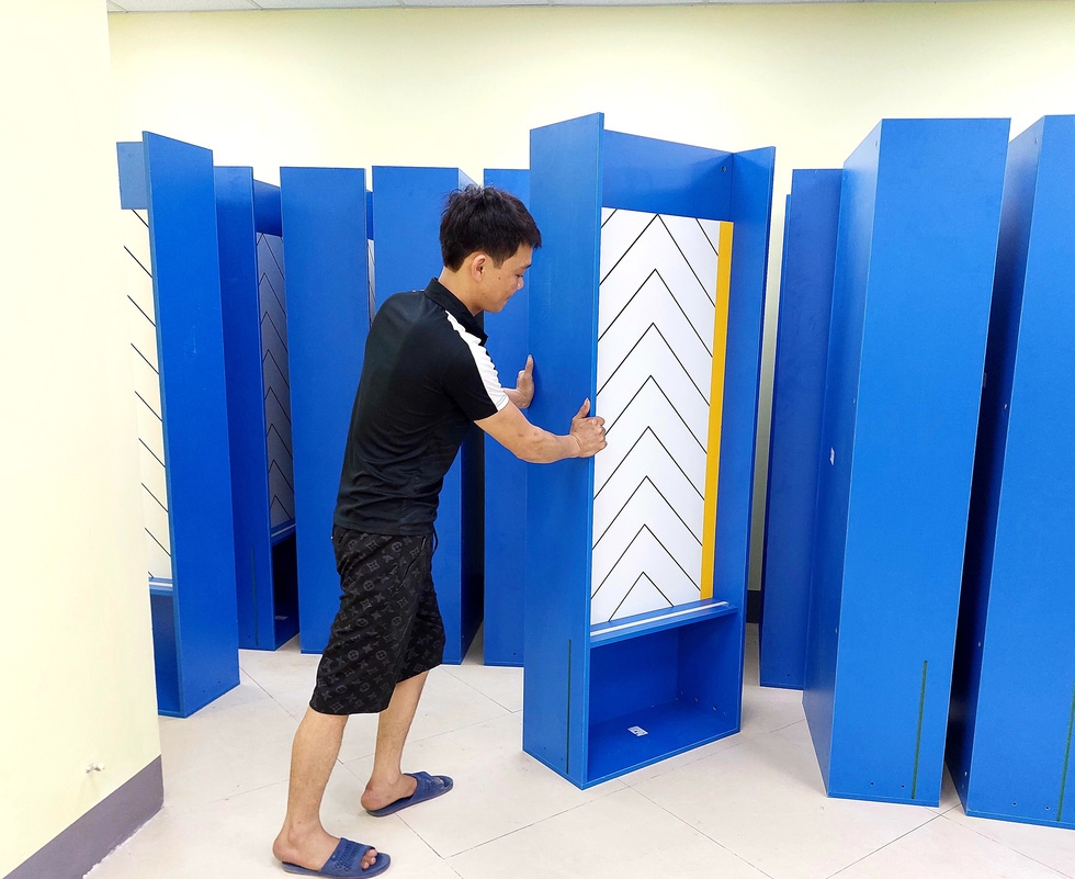 ห้องแต่งตัวนักกีฬาในสนามกีฬาแห่งชาติ หมีดิ่งห์ ได้รับการปรับปรุงด้วยการทาสีและปูกระเบื้องใหม่ทั้งหมด พร้อมติดตั้งระบบตู้เสื้อผ้าสีน้ำเงิน