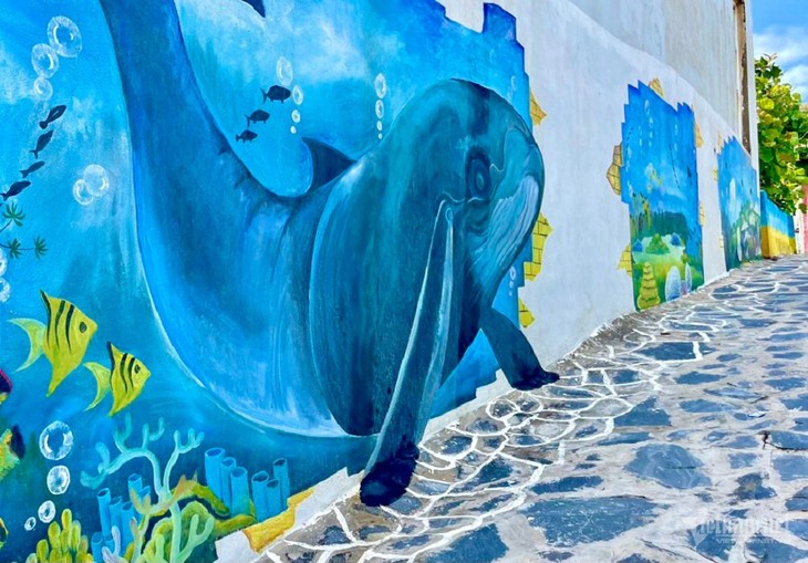 ภาพวาดฝาผนังหลากหลายสีสันในหมู่บ้านได้แสดงให้เห็นถึงชีวิตความเป็นอยู่ของชาวประมงในพื้นที่ (ภาพจาก VTC) |