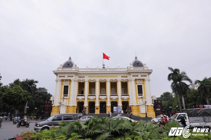 โรงละครใหญ่ฮานอยเป็นสถานที่ที่จัดพิธีชักธงในวันที่ 10 ตุลาคม ปี 1954 ปัจจุบัน โรงละครนี้เป็นสถานที่จัดกิจกรรมทางศิลปะของกรุงฮานอย ภาพจาก VTC News |