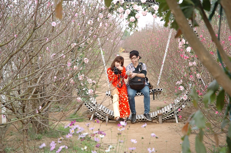 ถ่ายรูปกลางสวนดอกท้อ ความนิยมของหนุ่มสาวฮานอย