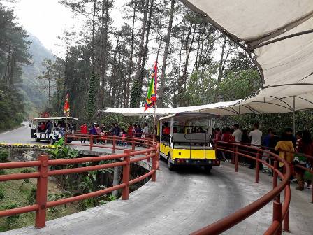 ![]() ทางขึ้นไปวัดก๊วกเหม้า โดยรถไฟฟ้าและกระเช้าไฟฟ้า