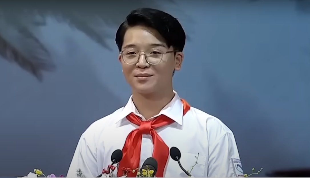 นาย เหงวียนแอพบปะ เป็นตัวแทนยุวชนดีเด่นที่ได้กล่าวปราศรัยต่อการประชุมใหญ่กองเยาวชนทั่วประเทศครั้งที่ 12 ปี 2022