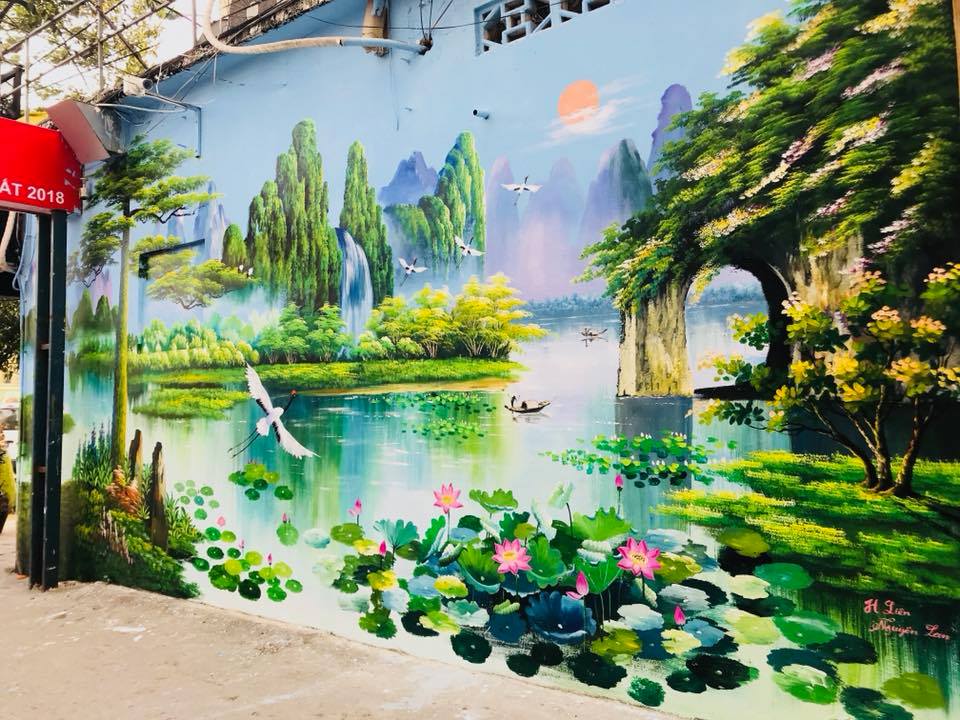 It is a Sunday winter morning, when cold temperatures make even the most outdoorsy person want to curl up with a cozy blanket. I struggle to get out of the house, wander around, and think about what to do on such a chilly wintry day. When I’m walking along Nguyen Chi Thanh street, I hear laughter down alley number 72. There's nothing like the laughter of children to immediately lighten my mood. As I walk toward the kids, who are aged just 3 to 10, I notice that they are painting a mural. “What are you painting?” I ask a little girl. - “I’m drawing a big tree, a smiling sunflower, a wandering cloud, and a girl reading a book under the shadow of a tree.”