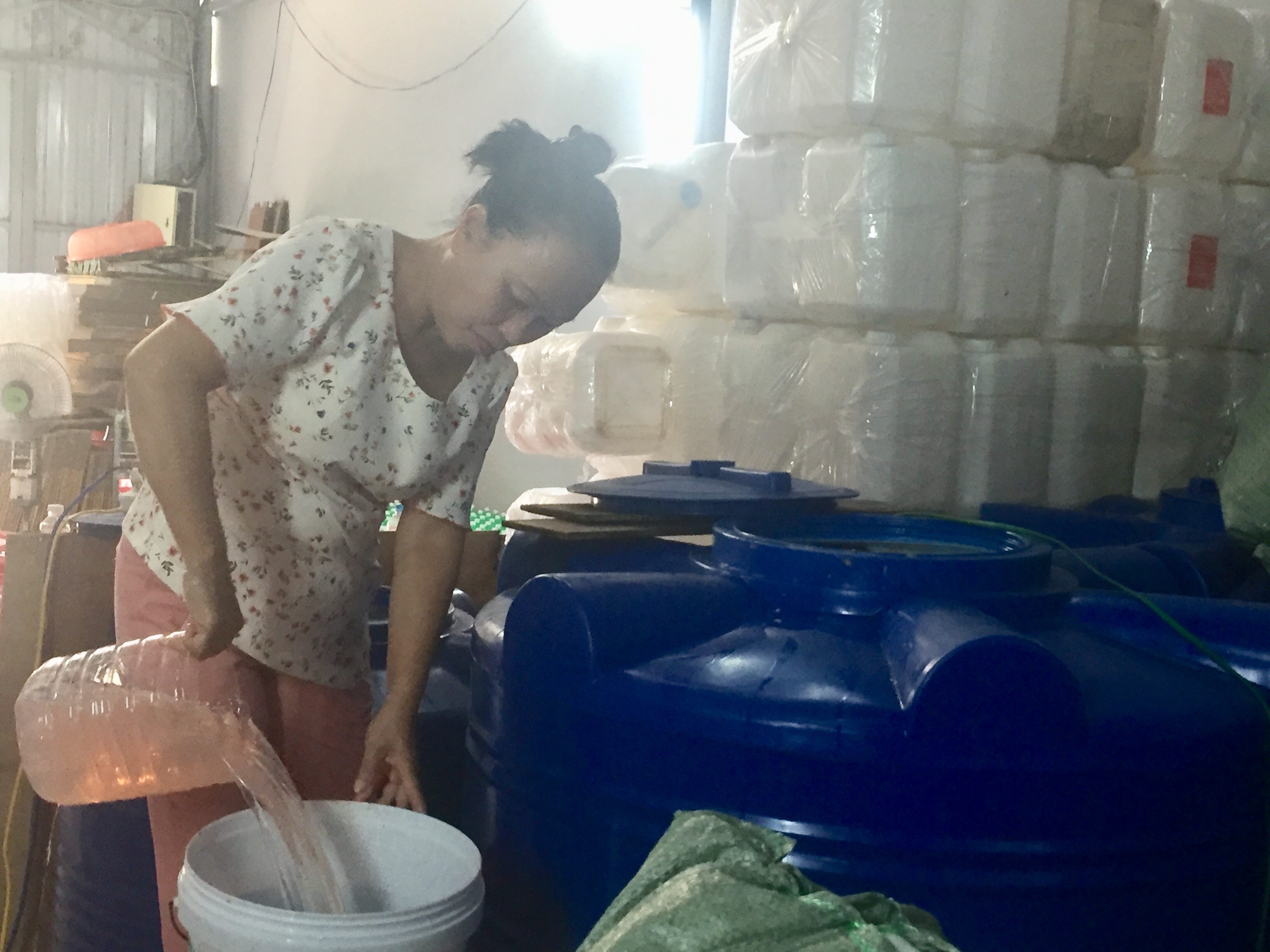 Organic waste, water, and sugar are the main ingredients for making Hong’s cleaning fluid. Cut into a section of about 3 cm, leftover plants are mixed with the two other ingredients, brewed for 30 days in closed container. After filtering several times, the fluid is brewed with an inoculant made from eggplant and turmeric powder for another 45 days. At first, Hong introduced her products to her friends, relatives, and the Women’s association. Word of mouth brought her more and more customers.