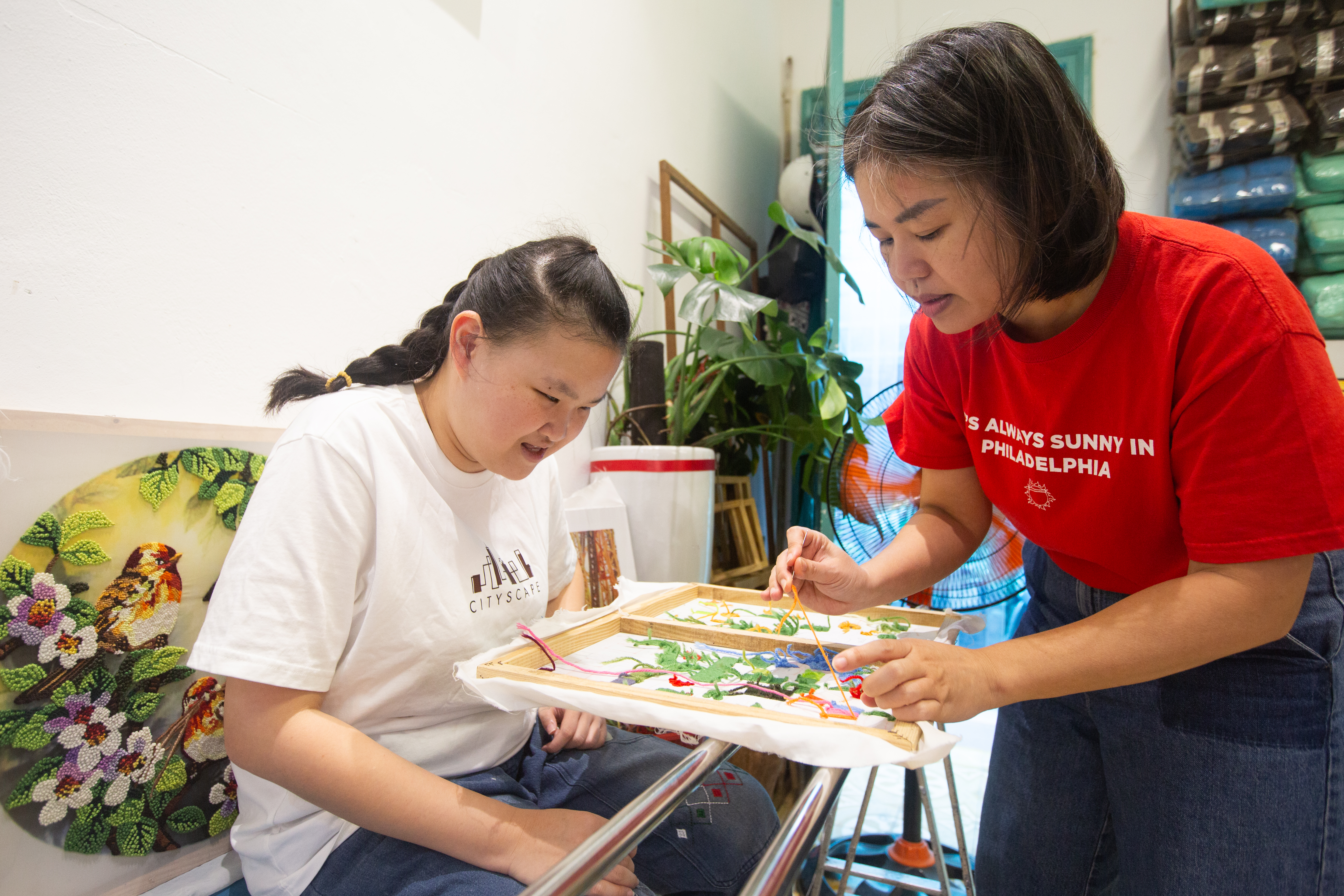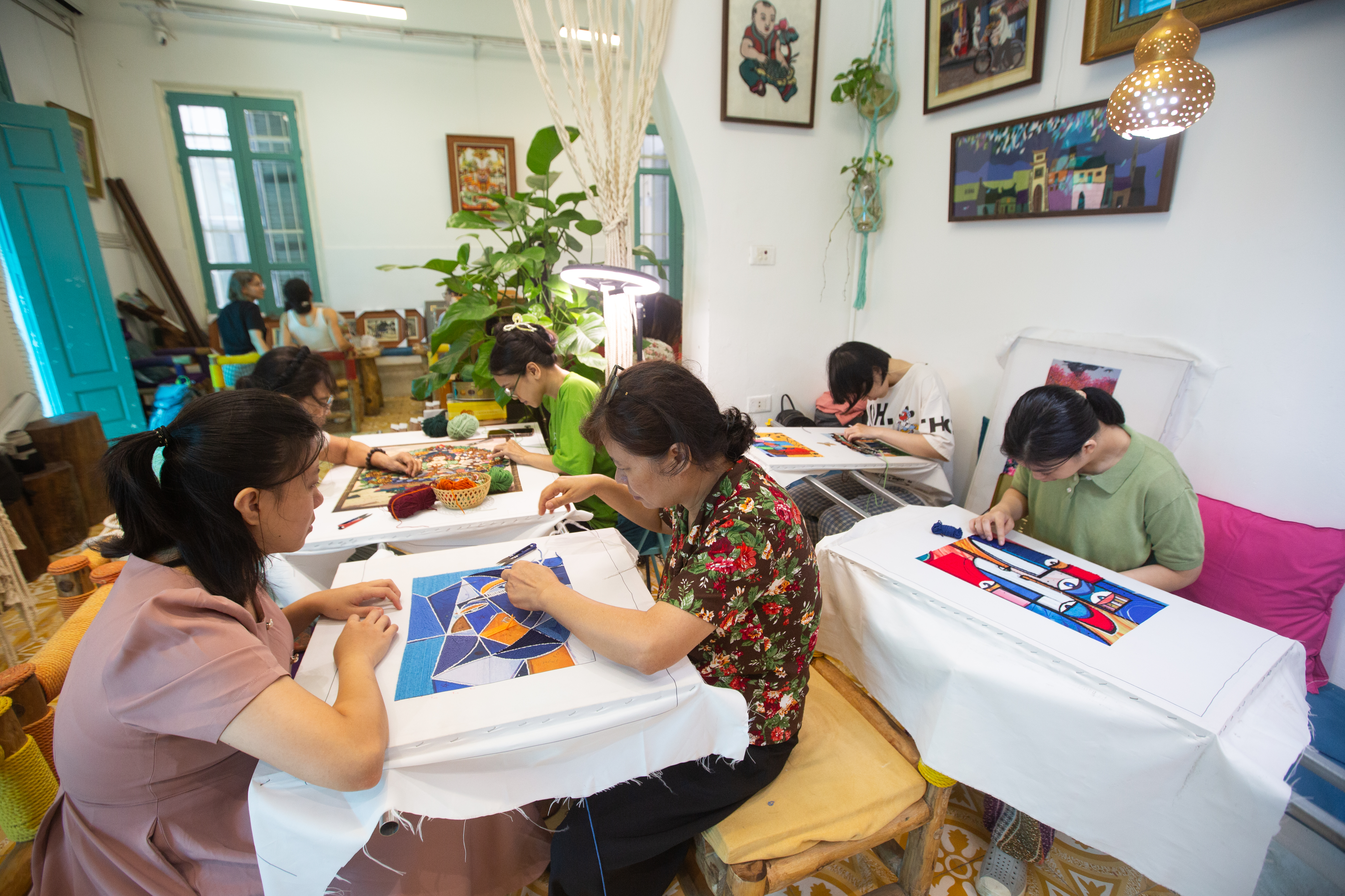 Artist Nguyen Thi Hong Van runs the studio — a combination of wool embroidery production and free vocational training for youth with a disability, autism, hearing impairment, or other difficult circumstance.
