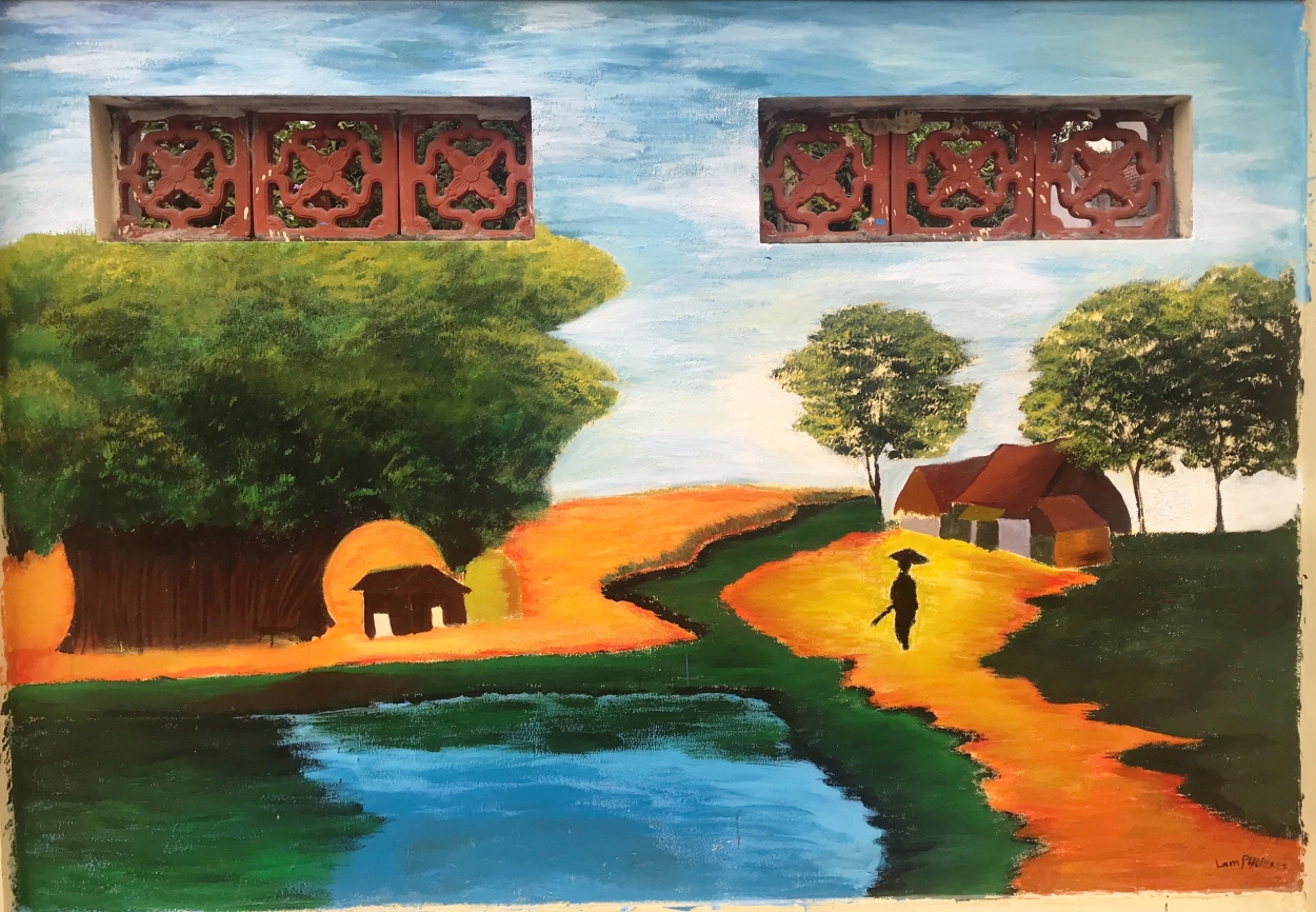 As a second-year student at Hanoi Architectural University, after his daily studies, Ngo Trong Nghia actively participates in extracurricular activities of Dong Ngac ward’s youth union. As part of the youth movement philosophy to express themselves through a variety of materials and mediums, Nghia took the on role of sketching on mural street in Dong Ngac village.