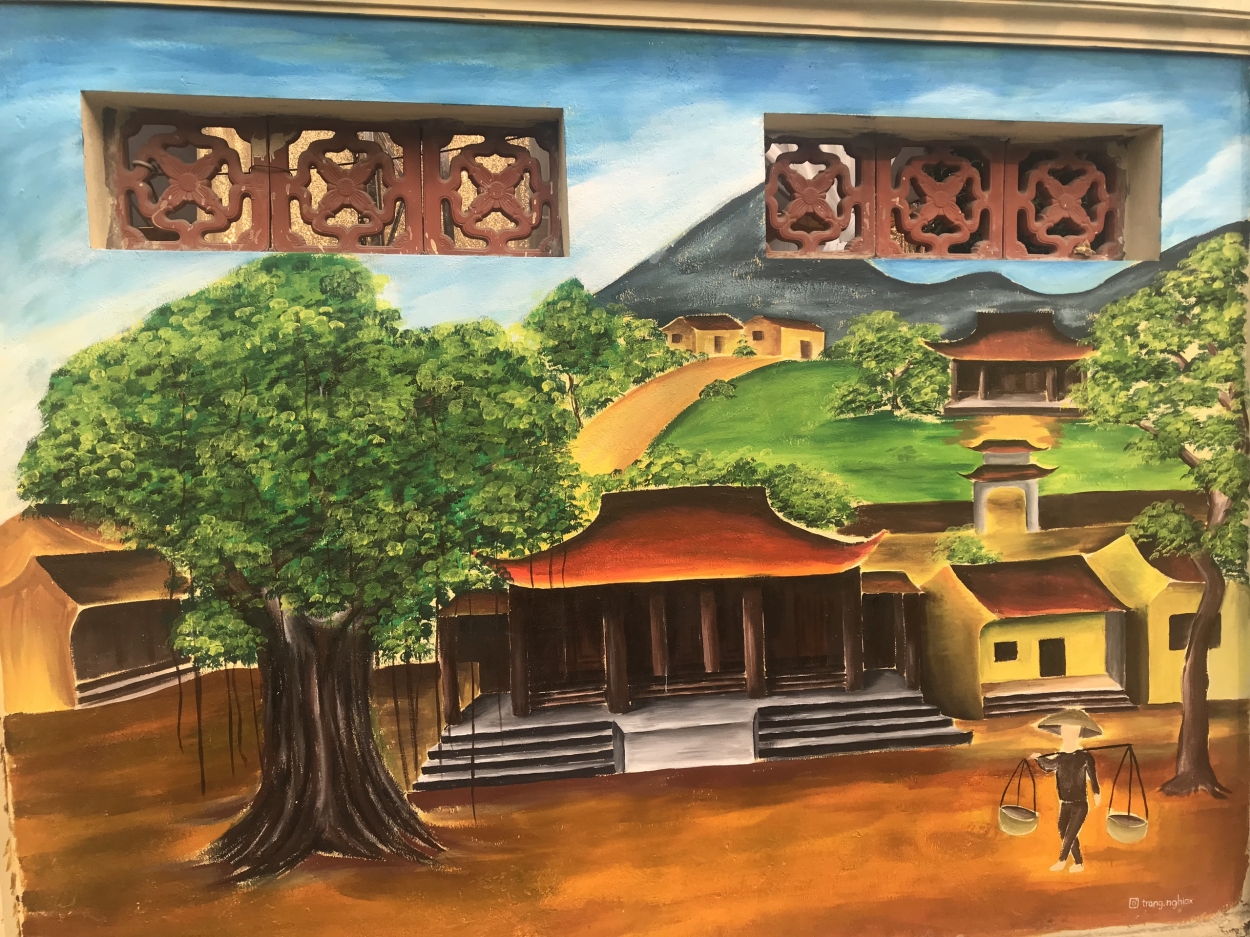 The 17 paintings amazed local residents. They feature Dong Ngac’s unique cultural traditions such as Ve communal house and its traditional festivals and folk games. The youth painted a picture of Dong Ngac in the old days with banyan trees, a well, a communal house, and a variety of ancient houses.