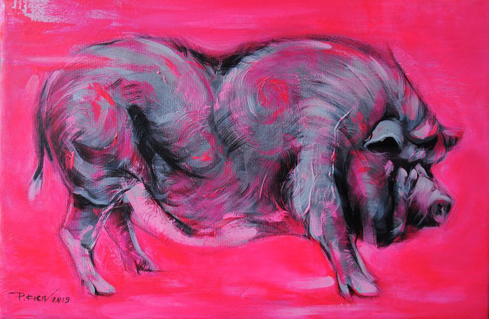 Painter Nguyen Minh Nam took photos of pigs to explore unique angles of the animal in his work.