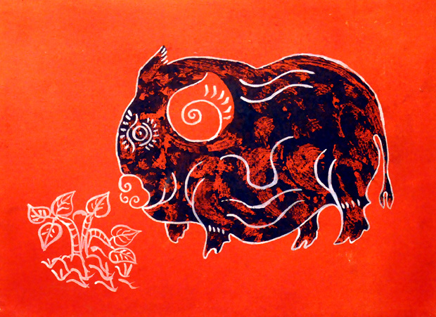 Zodiac animals have long appeared in Vietnamese folk paintings by the likes of Dong Ho, Hang Trong, and Kim Hoang. The Dong Ho painting “Pigs”, which depicts a mother pig and a group of piglets, symbolizes wealth and prosperity.