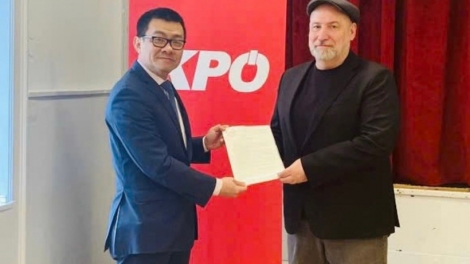 (VOV5) - Chủ tịch Đảng Cộng sản Áo Günther Hopfgartner đề xuất hai Đảng tăng cường thảo luận, trao đổi, nhất là Đảng Cộng sản Việt Nam chia sẻ kinh nghiệm xây dựng đảng và lãnh đạo, cầm quyền...