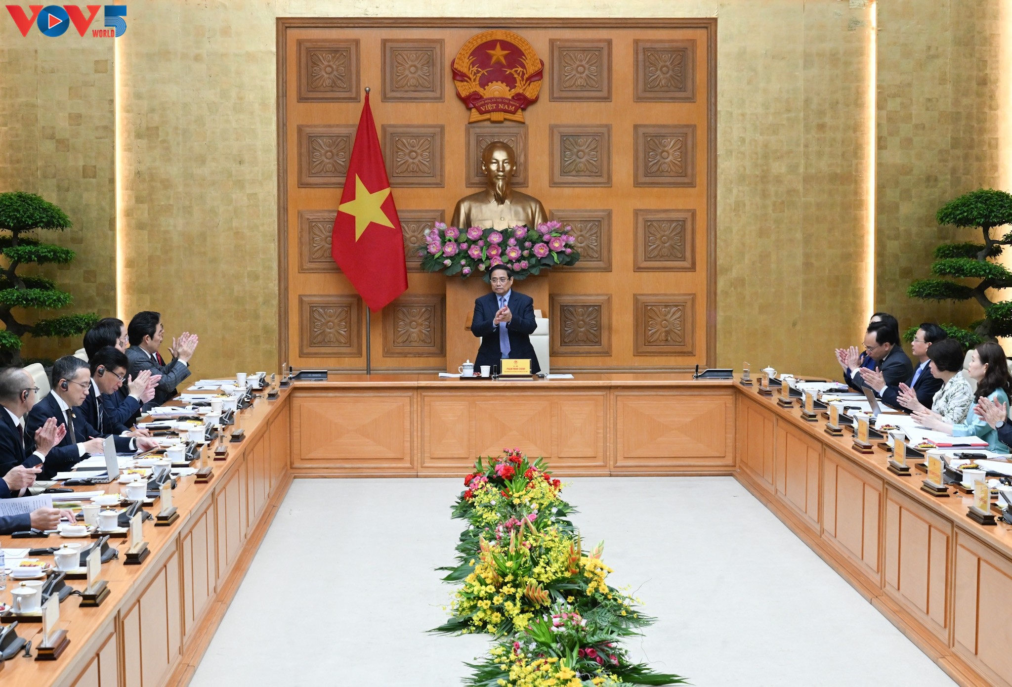 Thủ tướng Chính phủ Phạm Minh Chính đối thoại với các doanh nghiệp Nhật Bản. Ảnh: Việt Cường/VOV |