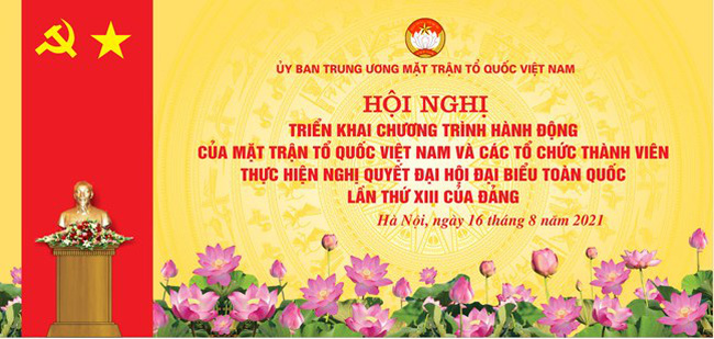 Sáng 16/8, tại Hà Nội, Ban thường trực Ủy ban Trung ương Mặt trận Tổ quốc Việt Nam tổ chức hội nghị trực tuyến toàn quốc triển khai Chương trình hành động của Mặt trận Tổ quốc Việt Nam và các tổ chức thành viên thực hiện Nghị quyết Đại hội Đảng toàn quốc lần thứ XIII. Tổng Bí thư Ban chấp hành Trung ương Đảng Cộng sản Việt Nam Nguyễn Phú Trọng tới dự và phát biểu chỉ đạo hội nghị.