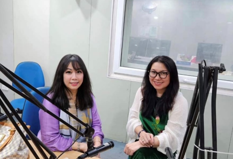 Ca sĩ Hồ Ngọc Nga (bên trái) trong studio của VOV5 |