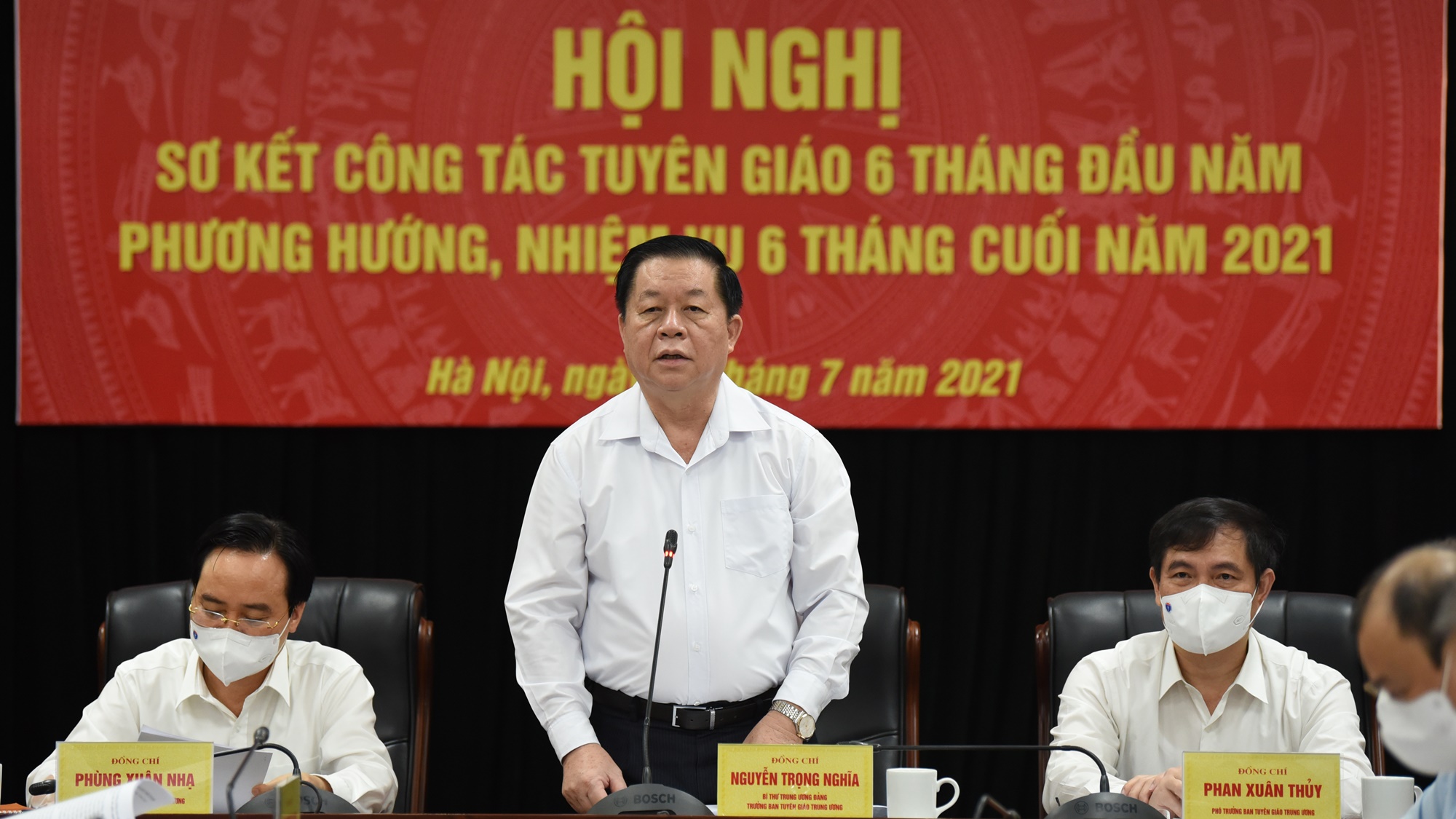 Phát biểu kết luận hội nghị, Trưởng Ban Tuyên giáo Trung ương Nguyễn Trọng Nghĩa đề nghị toàn ngành cần xác định tiếp tục thực hiện nghiêm túc, hiệu quả về Nghị quyết Đại hội lần thứ 13 của Đảng, triển khai sâu rộng xuống cơ sở, toàn diện, chuyên sâu, giữ vững vấn đề về nguyên tắc, những quan điểm lớn mà Đại hội lần thứ 13 đã đề ra, đặt lợi ích quốc gia, dân tộc lên trên hết. Trong bối cảnh dịch COVID-19 diễn biến phức tạp, Trưởng Ban Tuyên giáo Trung ương Nguyễn Trọng Nghĩa yêu cầu cần đa dạng hóa các hình thức quán triệt, tuyên truyền chuyên đề cho phù hợp, có hiệu quả thực hiện mục tiêu kép vừa đảm bảo thực hiện công tác phòng, chống dịch vừa thúc đẩy phát triển kinh tế - xã hội, bảo đảm an sinh và phúc lợi xã hội.