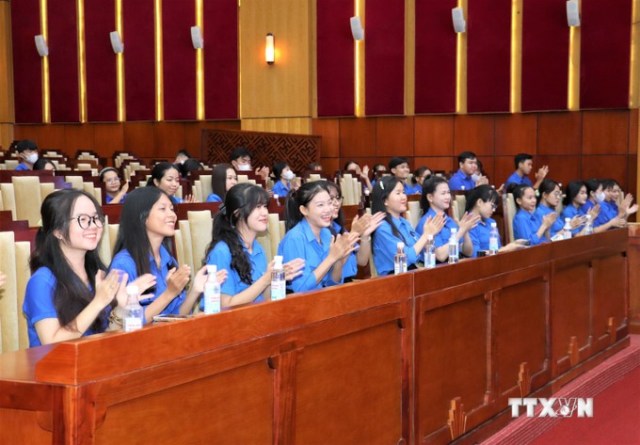 Đoàn viên thanh niên tham gia buổi sinh hoạt chuyên đề về biển, đảo Việt Nam. Ảnh: Minh Phú/TTXVN