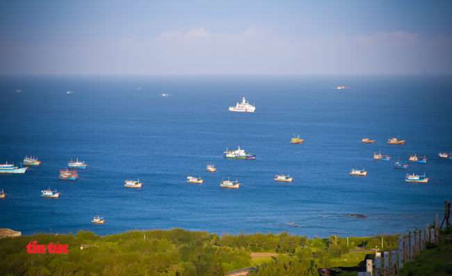 Tàu Cảnh sát biển đồng hành cùng ngư dân trên biển. Ảnh: Mạnh Linh/ baotintuc.vn |