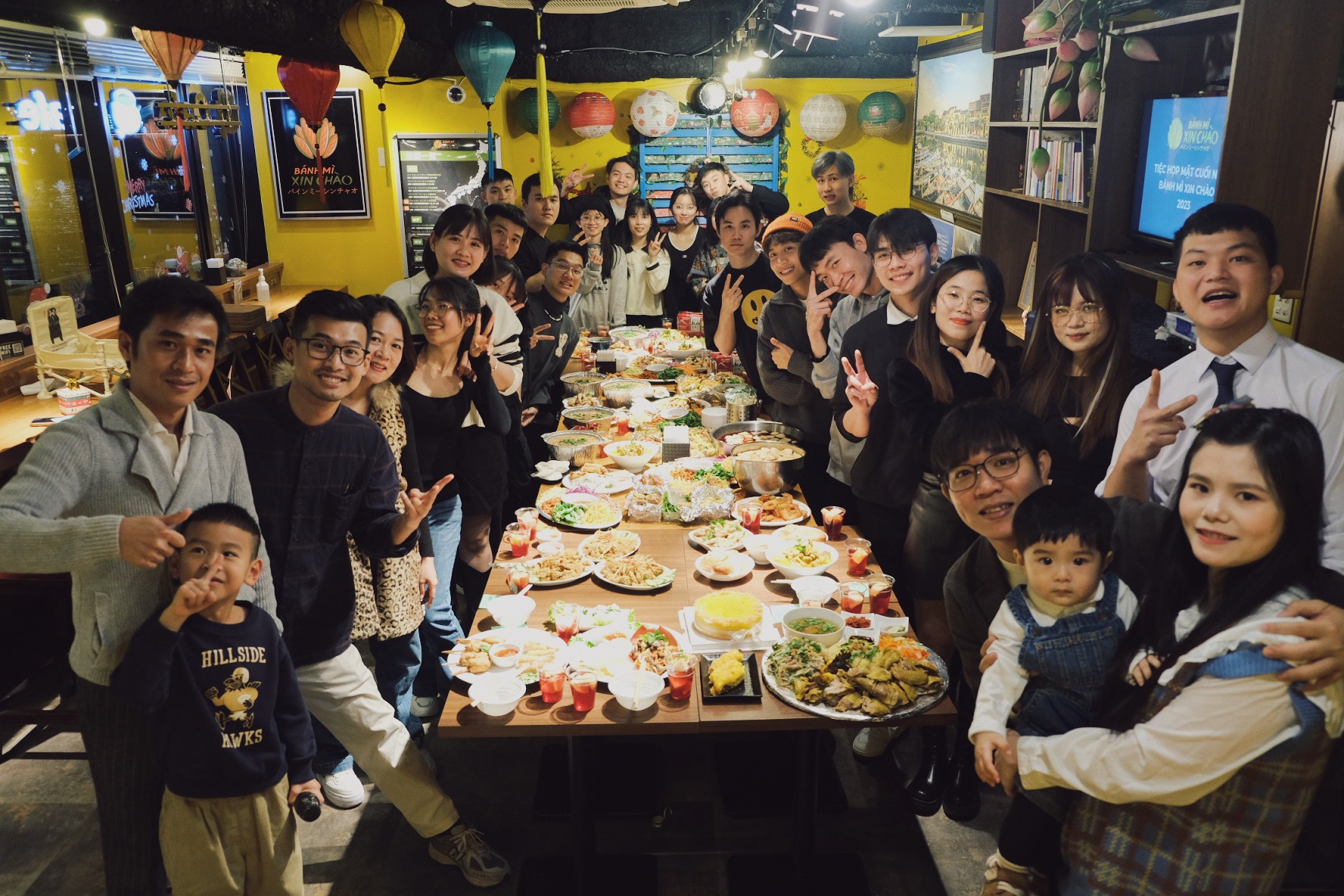 Tập thể nhân viên và lãnh đạo công ty tại tiệc tất niên 2023. |