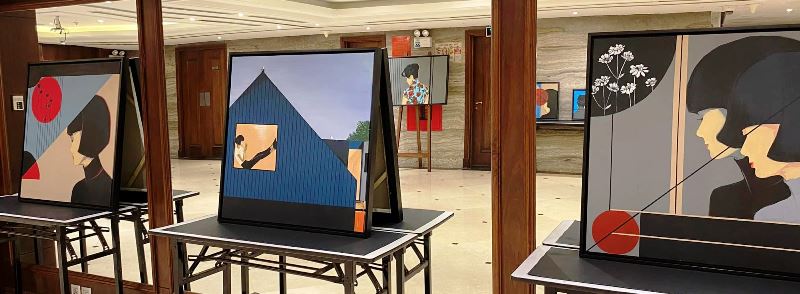 Tôi đã triển lãm tranh 3 lần ở Pháp, trong đó có 2 lần là triển lãm cá nhân và 1 lần triển lãm cùng 21 nghệ sĩ bên đó. Trong lần đầu tiên mang tranh về Việt Nam, tôi chọn bộ sưu tập được vẽ dựa trên những cảm xúc của bộ phim “In the mood for love”. Đầu tiên tôi vẽ về một nhân vật trong phim. Sau đó tôi tưởng tượng nhân vật đó về sau sẽ như thế nào... Lúc đầu là câu chuyện tình yêu giữa 2 người, gặp phải định kiến của xã hội nên họ không đến được với nhau. Sau đó cô gái đã chuyển hướng thành một con người khác... Tôi đã dựa vào những tình tiết trong phim, và rồi sau đó tôi phát triển những tình tiết đó theo trí tưởng tượng của mình.