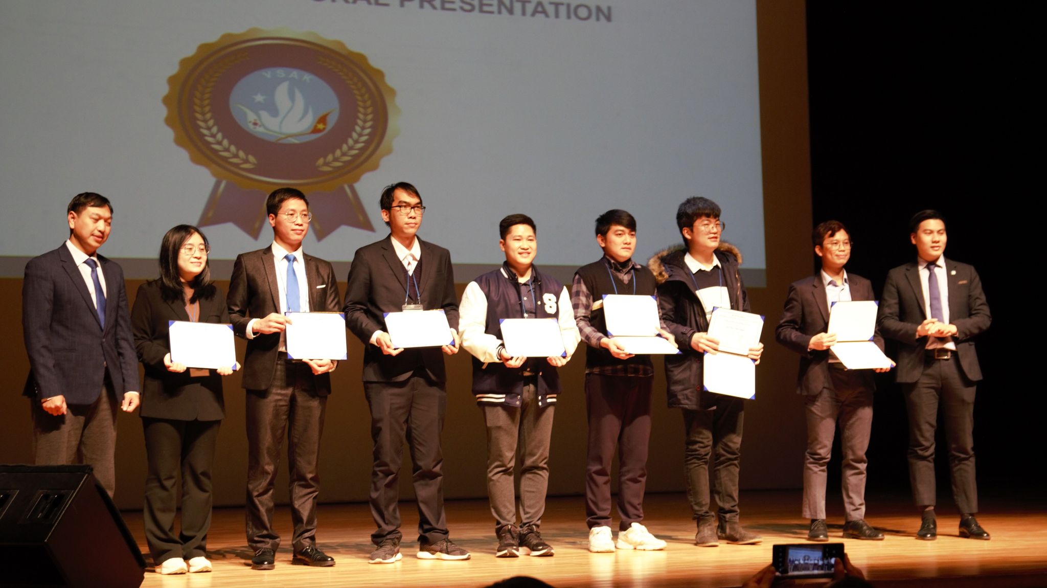Bạch Thị Phương Anh: Trong khuôn khổ chương trình hội thảo các nhà khoa học trẻ Việt Nam tại Hàn Quốc, chúng tôi có một giải thưởng mang tên là giải thưởng các nhà khoa học trẻ Việt Nam tại Hàn Quốc. Giải thưởng này mở ra để vinh danh các tài năng trẻ có thành tích xuất sắc trong học tập và nghiên cứu thuộc trong 5 lĩnh vực. Lĩnh vực thứ nhất là công nghệ thông tin chuyển đổi số tự động hóa. Thứ hai là công nghệ y dược. Thứ ba là công nghệ sinh học. Thứ tư là công nghệ môi trường. Thứ năm là công nghệ vật liệu mới. Giải thưởng của chúng tôi hằng năm thu hút rất nhiều các sinh viên cũng như nghiên cứu sinh tham gia.