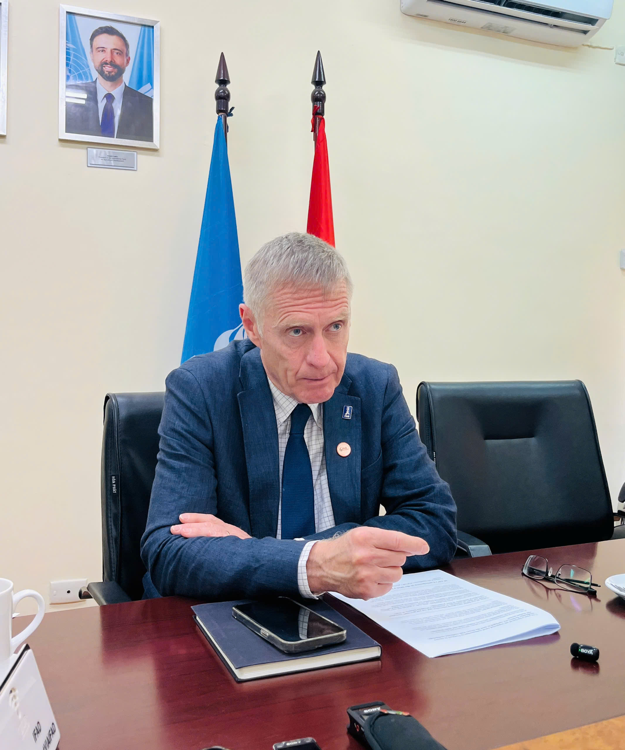 Tiếp theo là họ cần tiếp cận cơ sở hạ tầng. Tôi biết ưu tiên là việc làm của Chính phủ. Họ cần có các dự án thủy lợi lớn, các dự án đường bộ lớn. Và, những gì chúng tôi cố gắng và làm là kết nối họ với các dự án cơ sở hạ tầng lớn hơn - chúng tôi gọi đó là đường cấp ba hoặc đường nhánh...Ngoài ra, các dự án tài chính nhỏ, hỗ trợ tín dụng phù hợp là điều rất quan trọng. Nếu không có tài chính, các hộ nông dân khó có thể đầu tư vào công nghệ và phát triển. Đây là một lĩnh vực mà IFAD tập trung mạnh mẽ, nhằm đảm bảo nông dân nhỏ có thể vượt qua các rào cản và đạt được tiềm năng tối đa.
