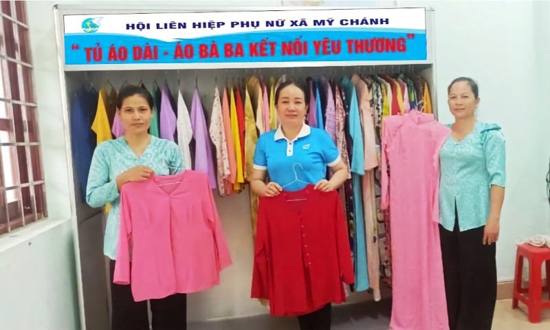 Bà Hoàng Oanh: Chúng tôi đã phát động Tuần lễ áo dài, huy động tất cả chị em mặc áo dài trong các ngày lễ lớn của đất nước. Tuy nhiên không phải ai cũng có điều kiện để mặc áo dài, vì vậy Hội phụ nữ Bến Tre đã xây dựng các Tủ áo dài yêu thương. Các chị em có điều kiện sẽ chọn ra những chiếc áo dài mà mình tháy ưng ý nhất, đẹp nhất để tặng cho Tủ áo dài đó. Sau đó, các cấp hội phụ nữ sẽ tặng lại cho những chị em có hoàn cảnh khó khăn, không thể tự sắm những chiếc áo dài cho mình. Chương trình này được thực hiện từ năm 2021, đến nay vẫn tiếp tục duy trì và đã có hàng ngàn chiếc áo dài được trao tặng.