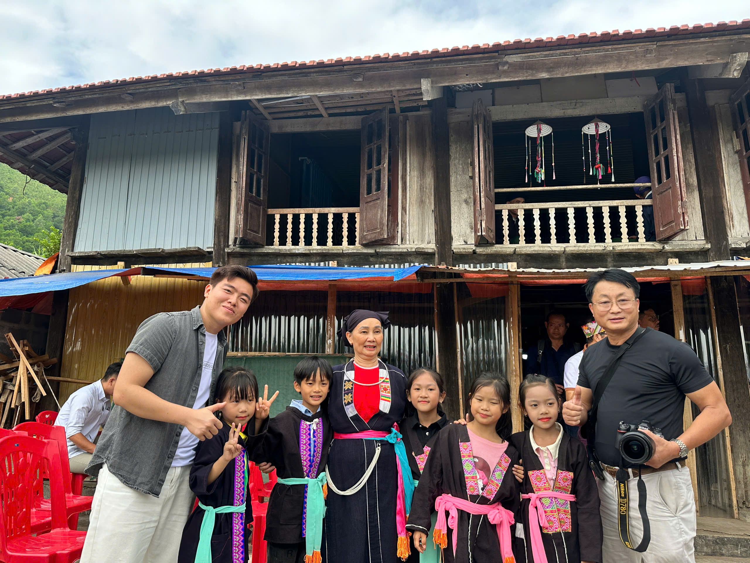 Du khách chụp ảnh lưu niệm với người dân tộc Sán Chay.