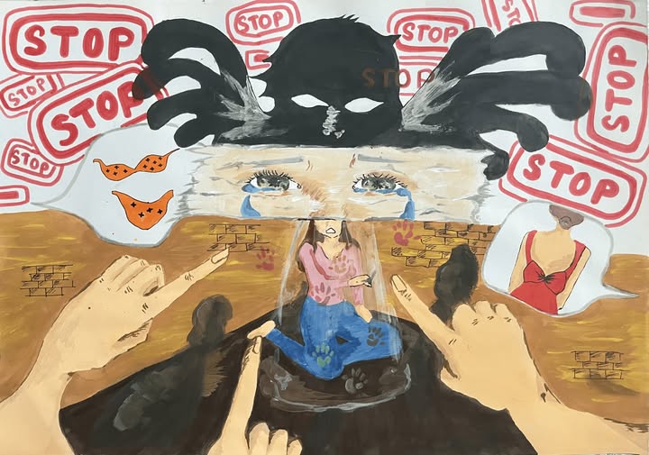 Nhân Ngày Dân số Thế giới tôi vẽ bức tranh này là tôi mong muốn cả thế giới cùng chung tay xây dựng một hành tinh an toàn văn minh đặc biệt với PHỤ NỮ và TRẺ EM." Tôi là người - Tác giả: Lý Mỹ Hiền, 16 tuổi - Tác phẩm trong khuôn khổ cuộc thi vẽ “Tương lai của tôi, Lựa chọn của tôi”.Tác giả Lê Mỹ Hiền.