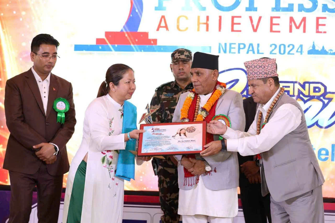 Chị Võ Thị Kim Cương nhận Giải thưởng cho phụ nữ Châu Á có nhiều đóng góp cho đất nước và người dân Nepal.