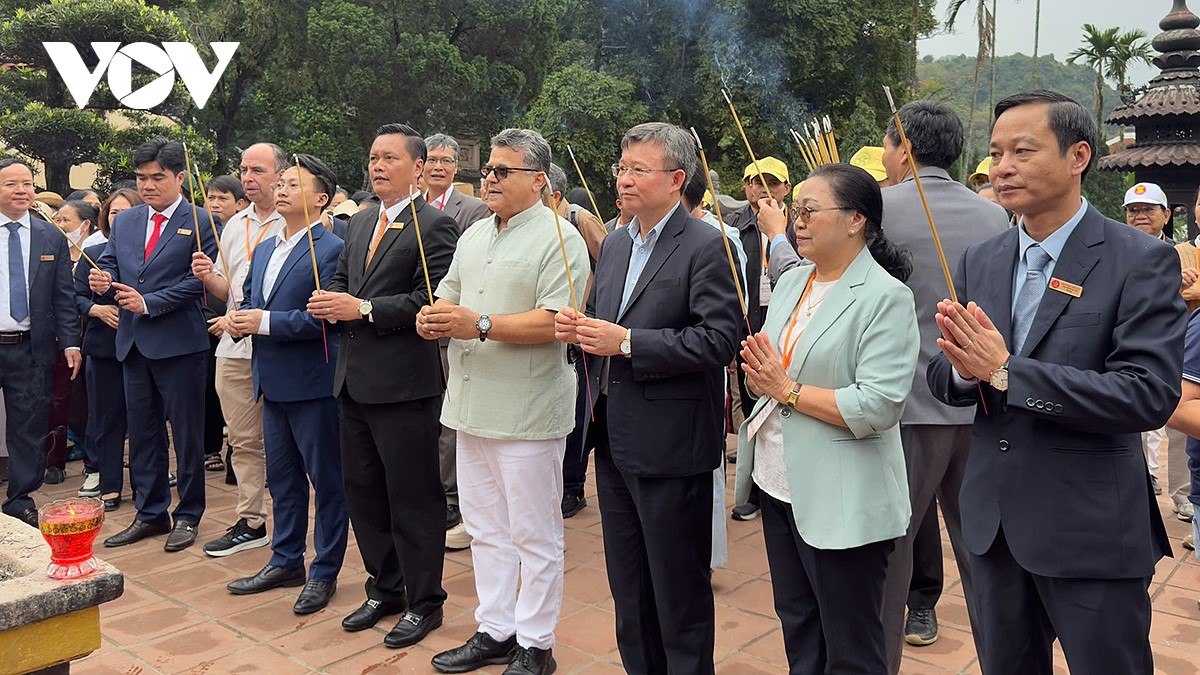 Đoàn đại biểu đã tổ chức dâng hương tại chùa Thiên Trù, một trong những điểm di tích quan trọng của Quần thể danh thắng Hương Sơn, thể hiện sự tôn kính đối với các giá trị văn hóa, tâm linh truyền thống của Việt Nam. Ảnh: Thư Vũ/VOV |