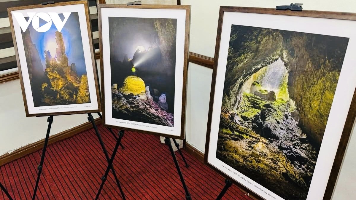 Các tác phẩm giới thiệu về danh lam thắng cảnh của Việt Nam tới bạn bè quốc tế. Ảnh: Phạm Hà/VOV-Jakarta |