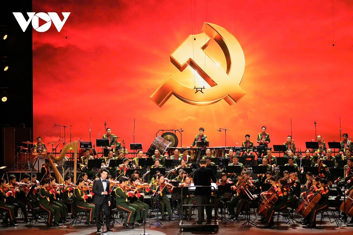 Chương trình kéo dài 80 phút, quy tụ gần 200 nghệ sĩ, được cấu trúc thành ba chương hồi, dẫn dắt khán giả qua hành trình âm nhạc đồng hành cùng dân tộc. Từ những giai điệu hào sảng ca ngợi Đảng, Bác Hồ, đến những khúc tráng ca về người lính và các tác phẩm kinh điển thế giới, MSO chứng minh năng lực biểu diễn điêu luyện và tư duy nghệ thuật hiện đại. Ảnh: Hà Phương/VOV |