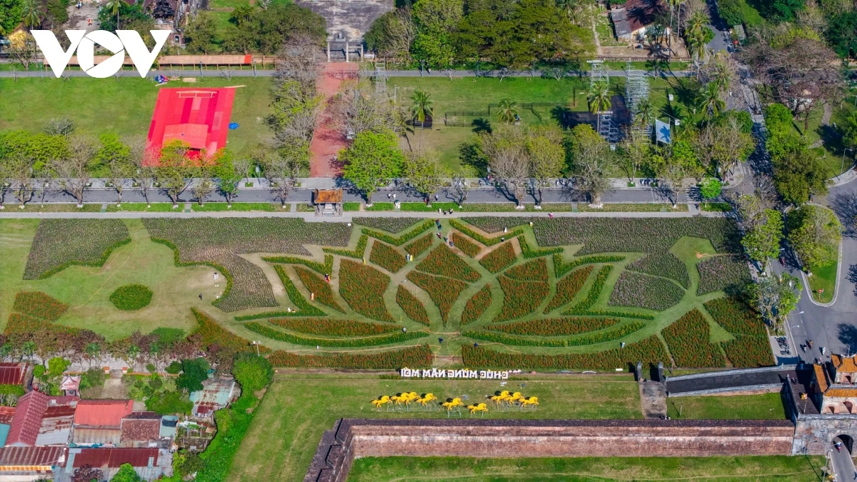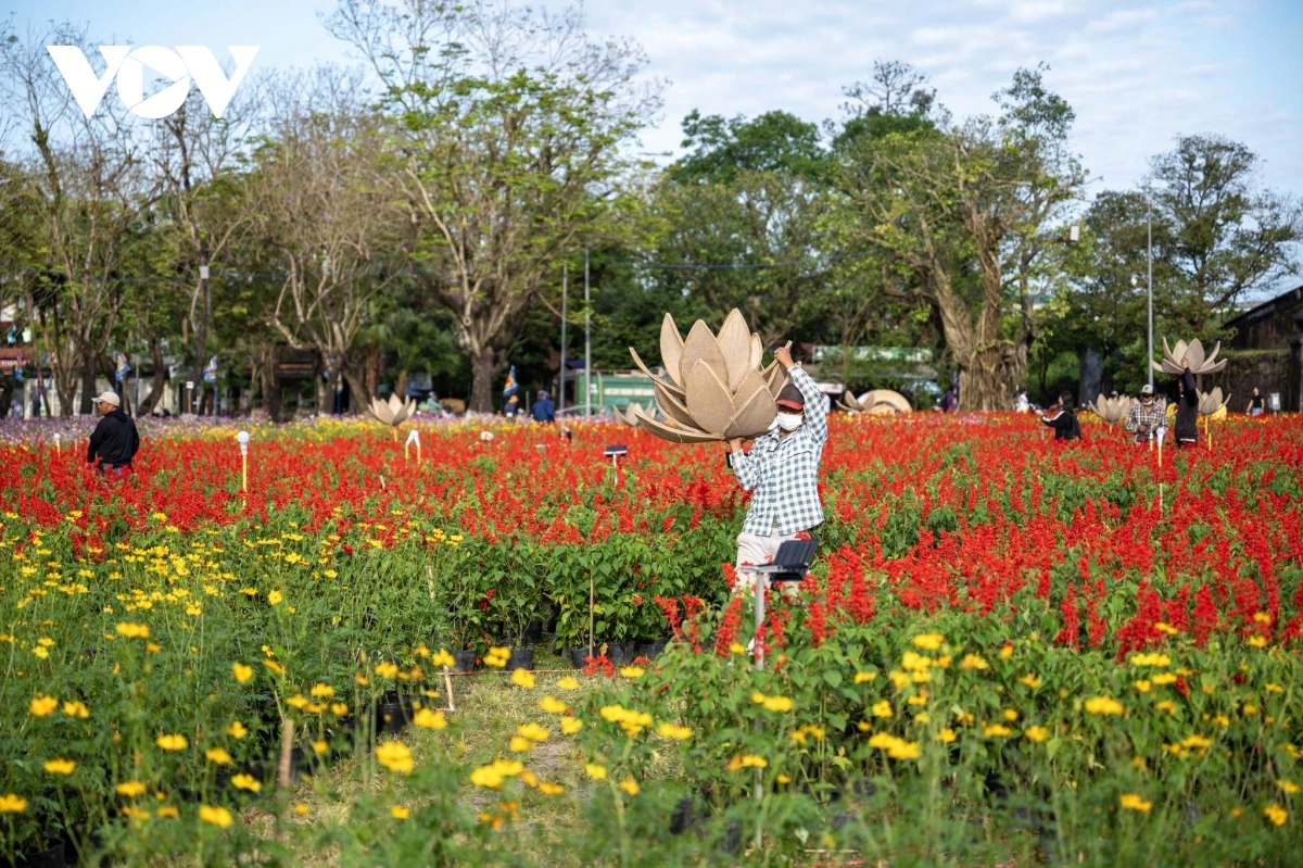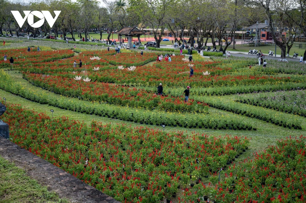 | Trên diện tích gần 10.000 m², Trung tâm Công viên Cây xanh Huế đã bố trí hơn 55.000 chậu hoa các loại, chủ đạo là hoa pháo và hoa bướm, được sắp xếp công phu, tỉ mỉ để tạo thành hình ảnh bông hoa sen nở rộ giữa không gian kinh thành. |
