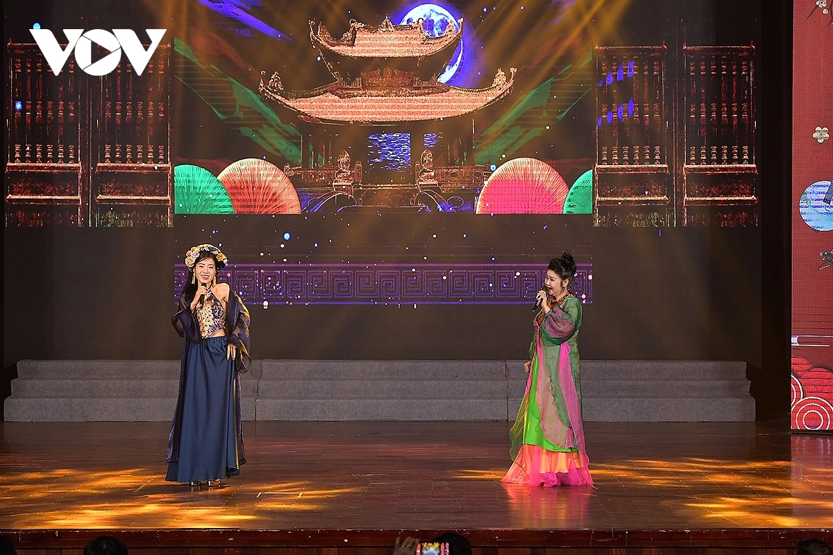 Tiết mục “Hát Ví giặm” do NSND Hồng Lựu và Ngọc Anh (Vương quốc Anh) biểu diễn.
