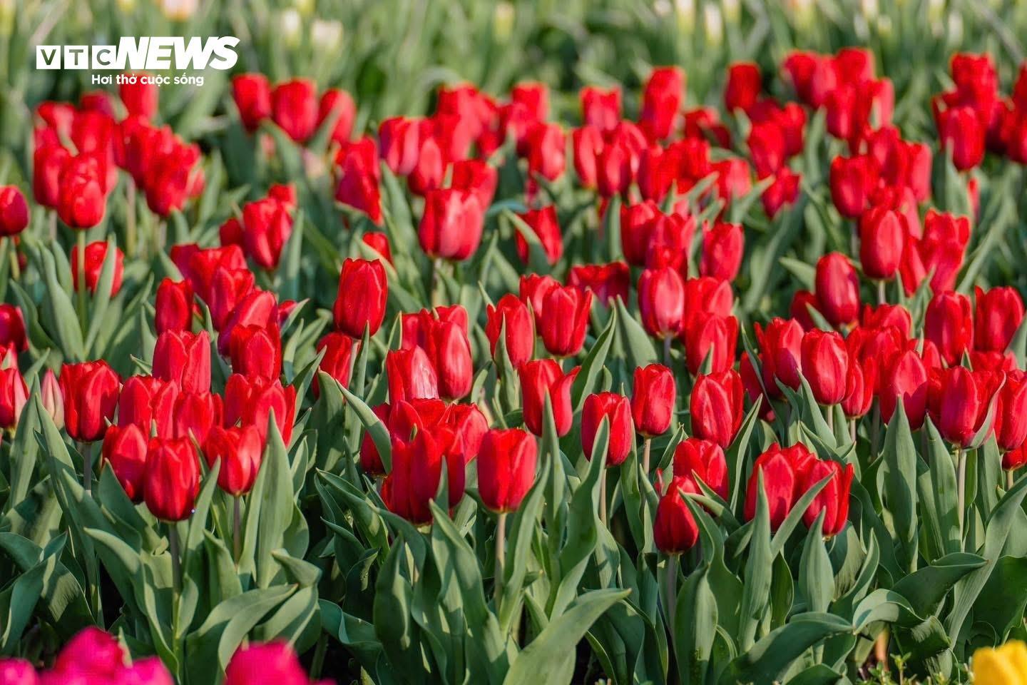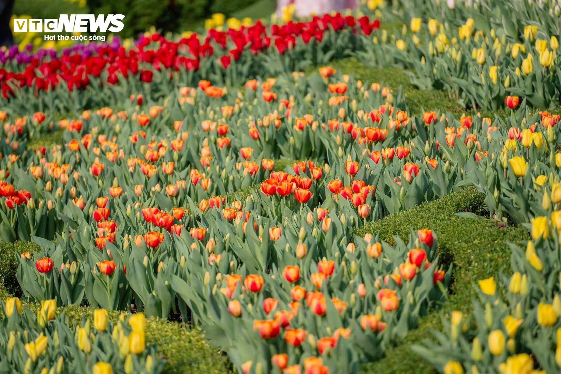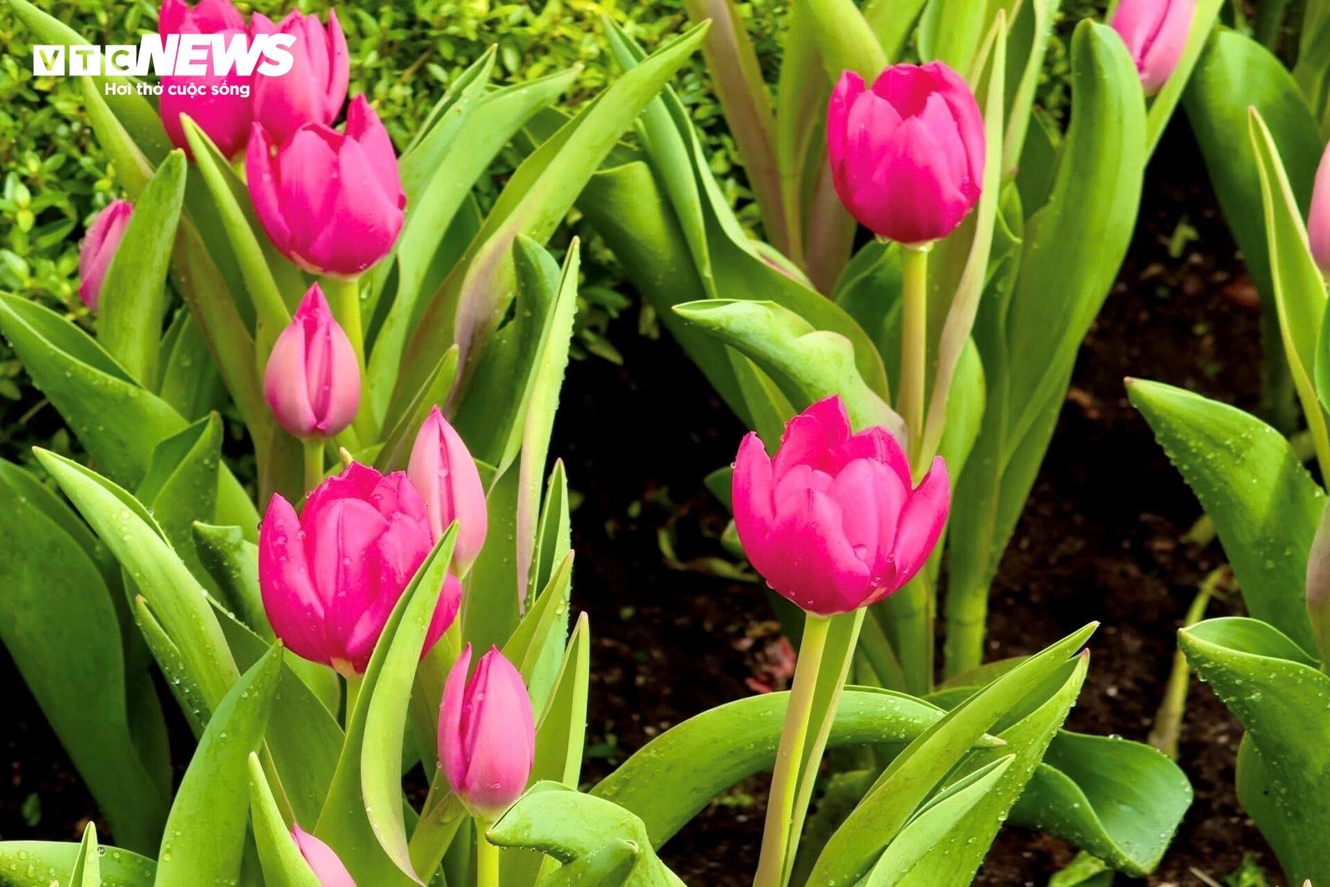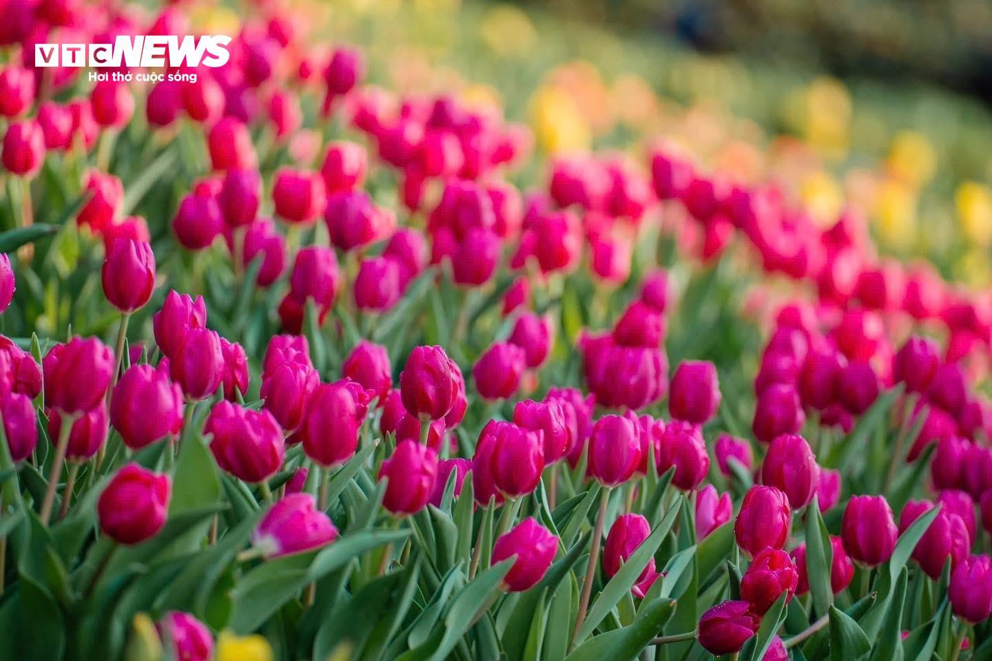 Tulip vốn là loài hoa đặc trưng của châu Âu, gắn với hình ảnh đất nước Hà Lan xa xôi. Thế nhưng giữa cái nắng phương Nam, hoa vẫn nở đều, sắc nét, khiến nhiều du khách không khỏi bất ngờ.