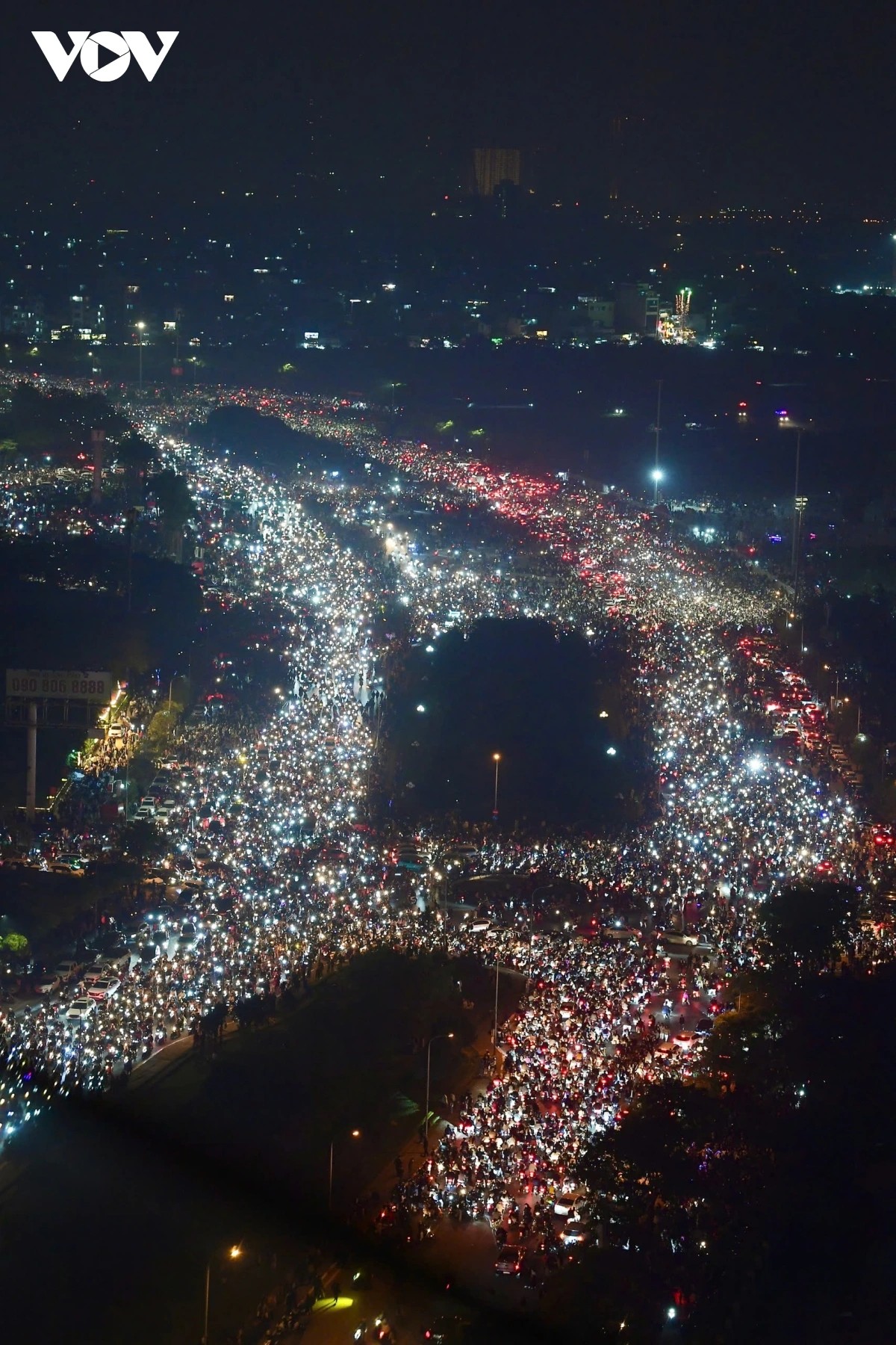 Sau thời khắc giao thừa, nhiều tuyến phố vẫn đông đúc. Đáng chú ý, khu vực đường Lê Quang Đạo ghi nhận cảnh “biển người”, cho thấy sức hút của các hoạt động đón năm mới cũng như nhu cầu vui chơi, trải nghiệm không gian lễ hội của người dân trong dịp Tết Dương lịch.