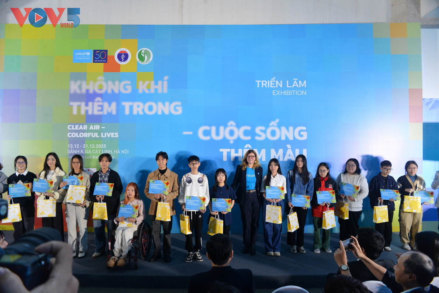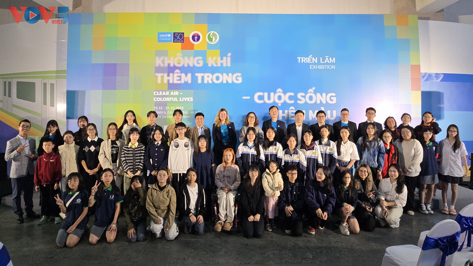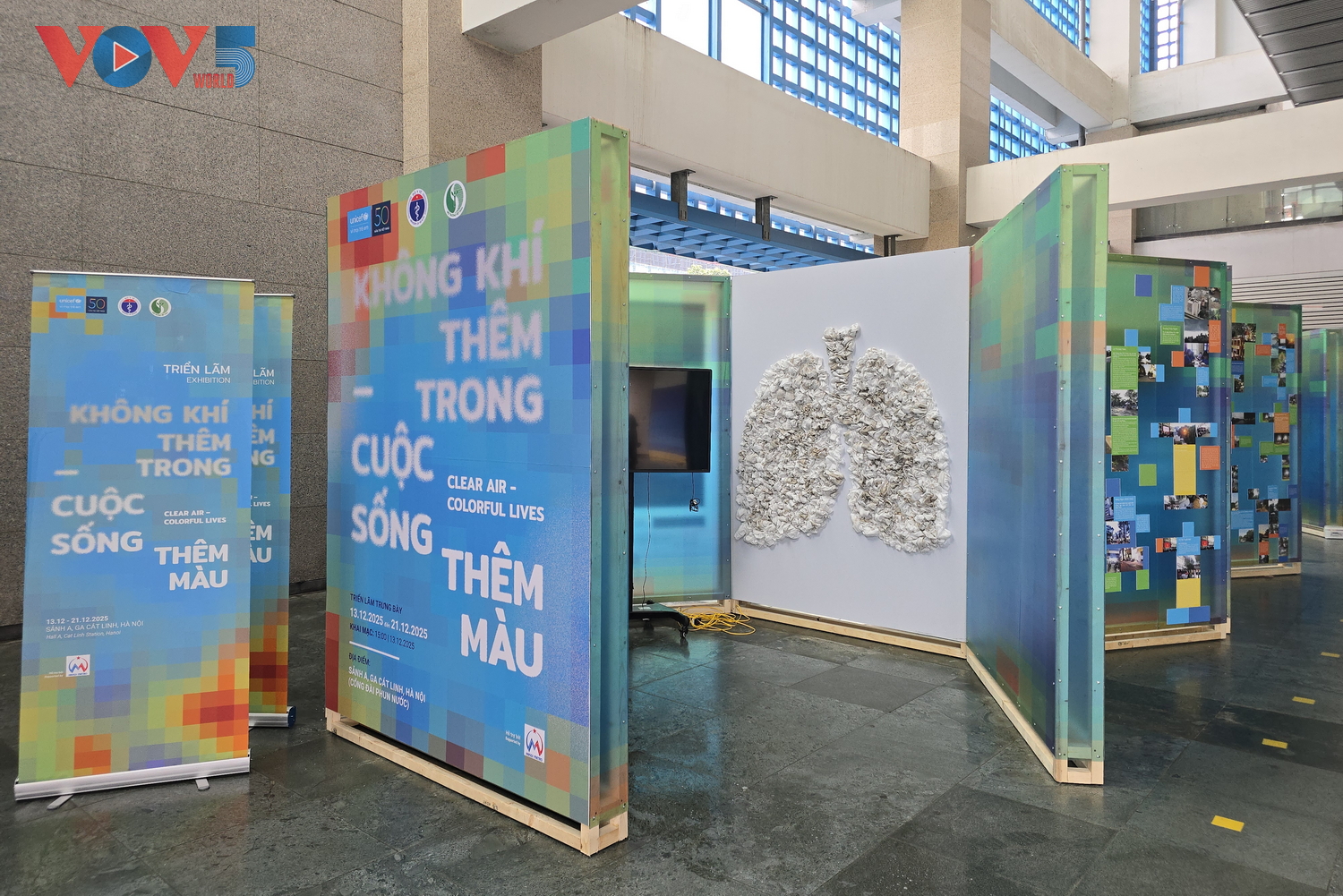 | Ngày 13/12, UNICEF Việt Nam phối hợp với Cục Phòng bệnh (Bộ Y tế) và Cục Môi trường (Bộ Nông nghiệp và Môi trường) tổ chức triển lãm "Không khí thêm trong - Cuộc sống thêm màu", mở cửa tự do từ ngày 13 - 21/12 tại Ga tàu điện Cát Linh, Hà Nội. |