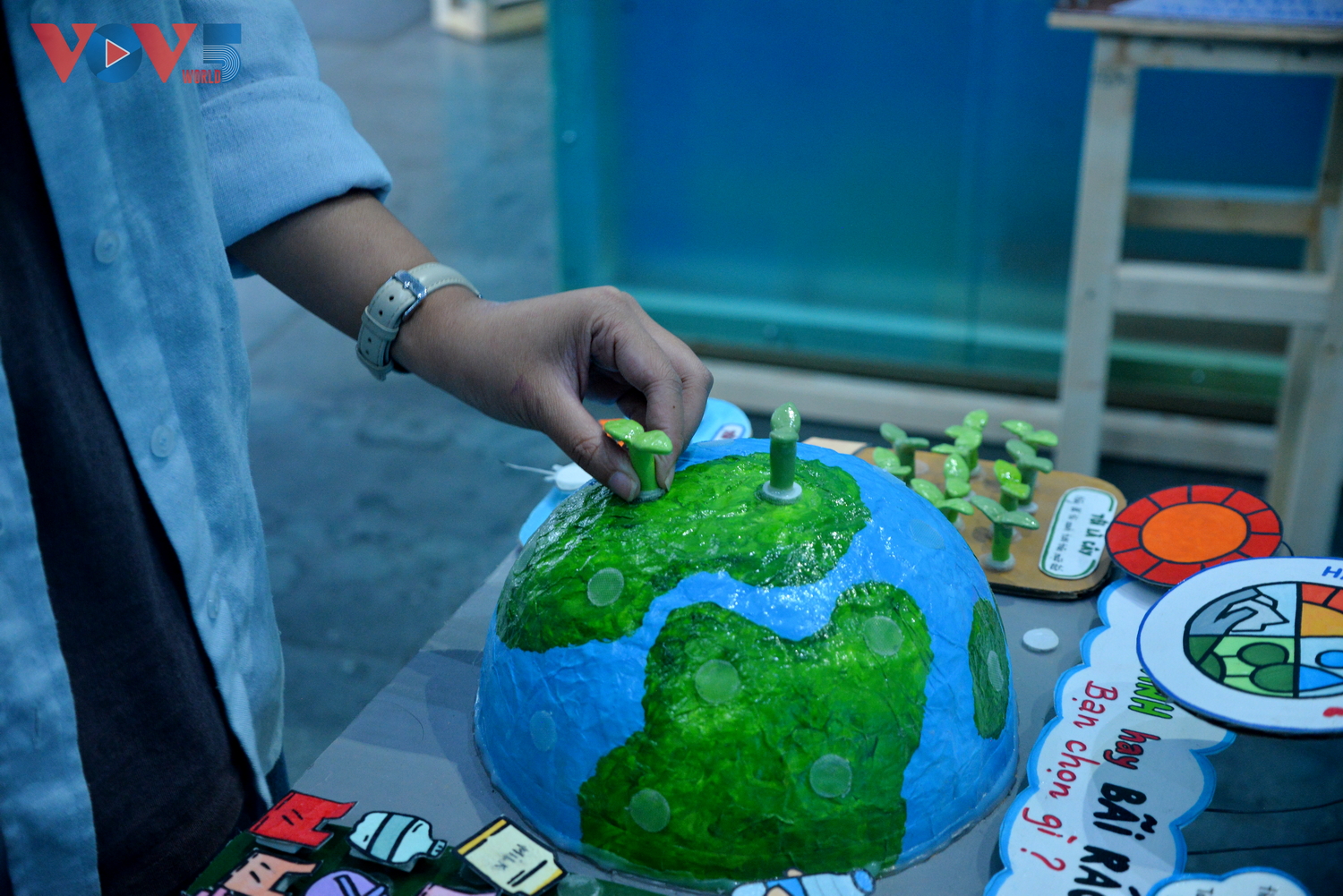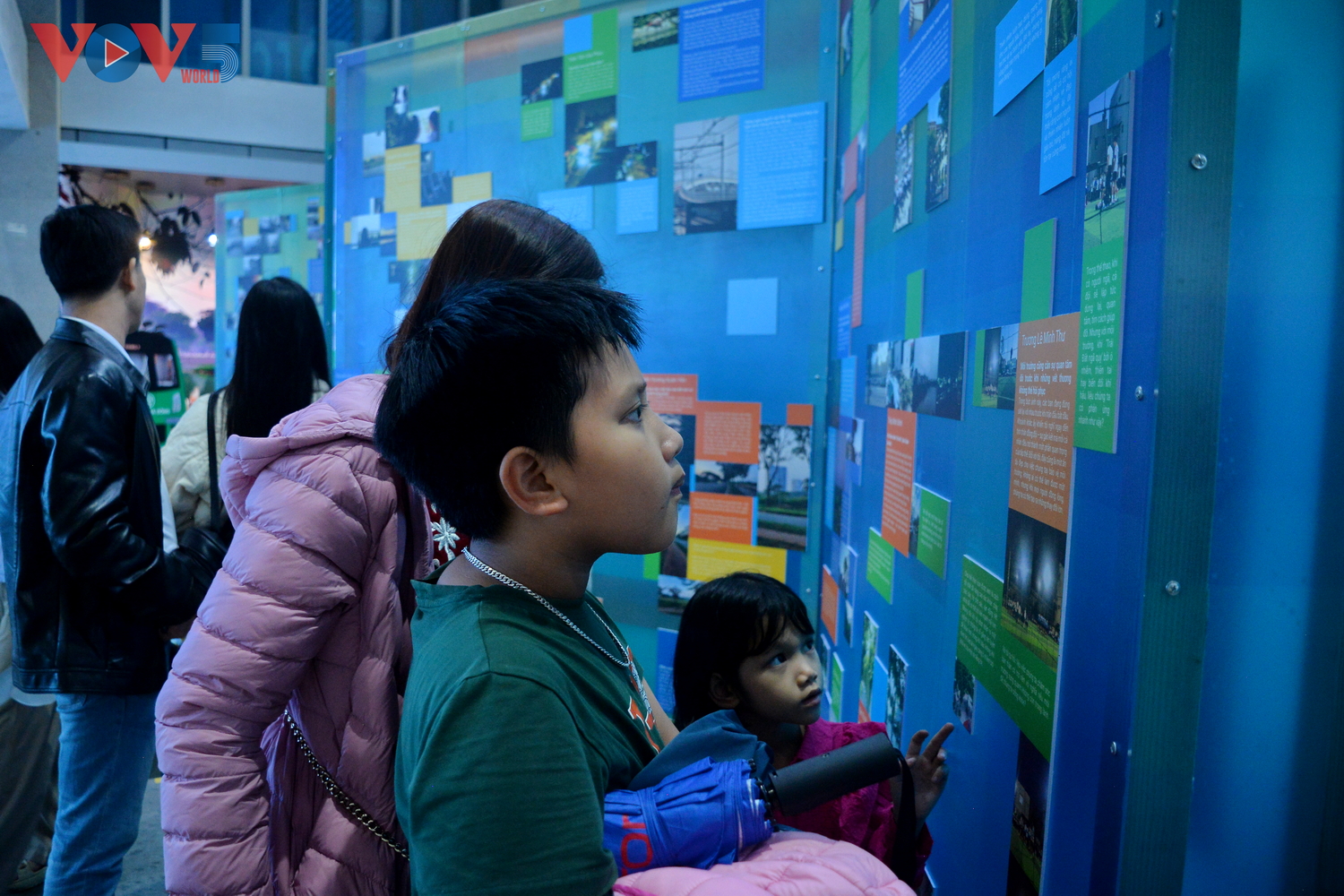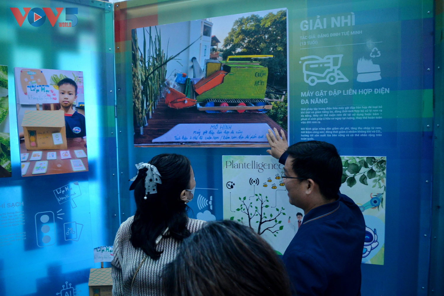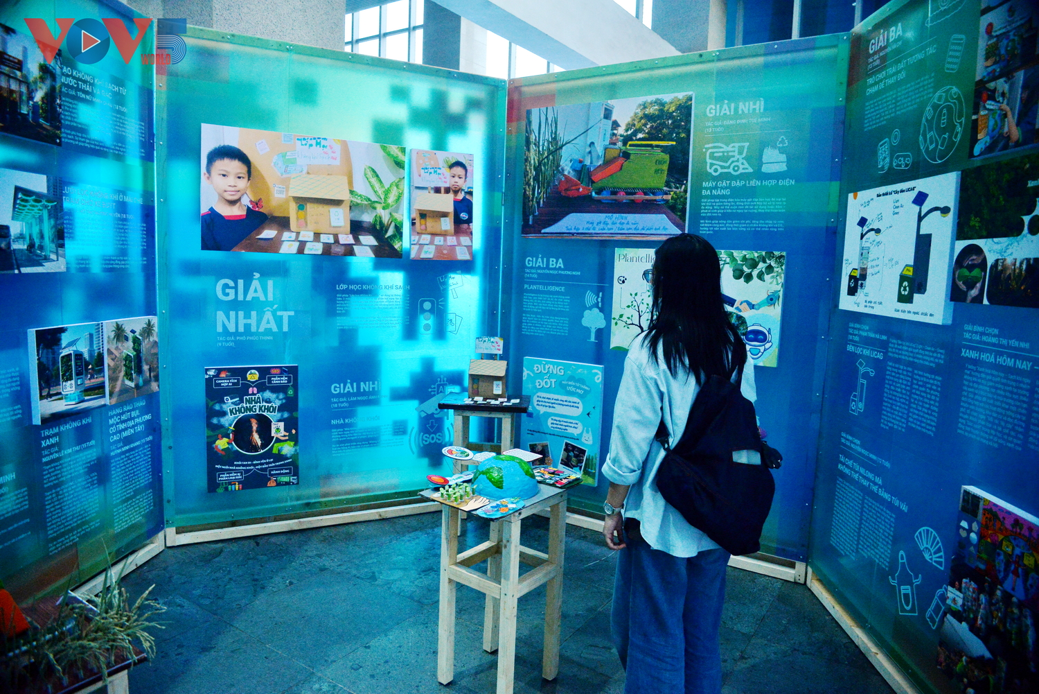 | Triển lãm cũng giới thiệu các sáng kiến đạt giải trong cuộc thi trực tuyến do UNICEF tổ chức dành cho trẻ em, tiếp nhận gần 200 ý tưởng sáng tạo nhằm cải thiện tình trạng ô nhiễm không khí. |