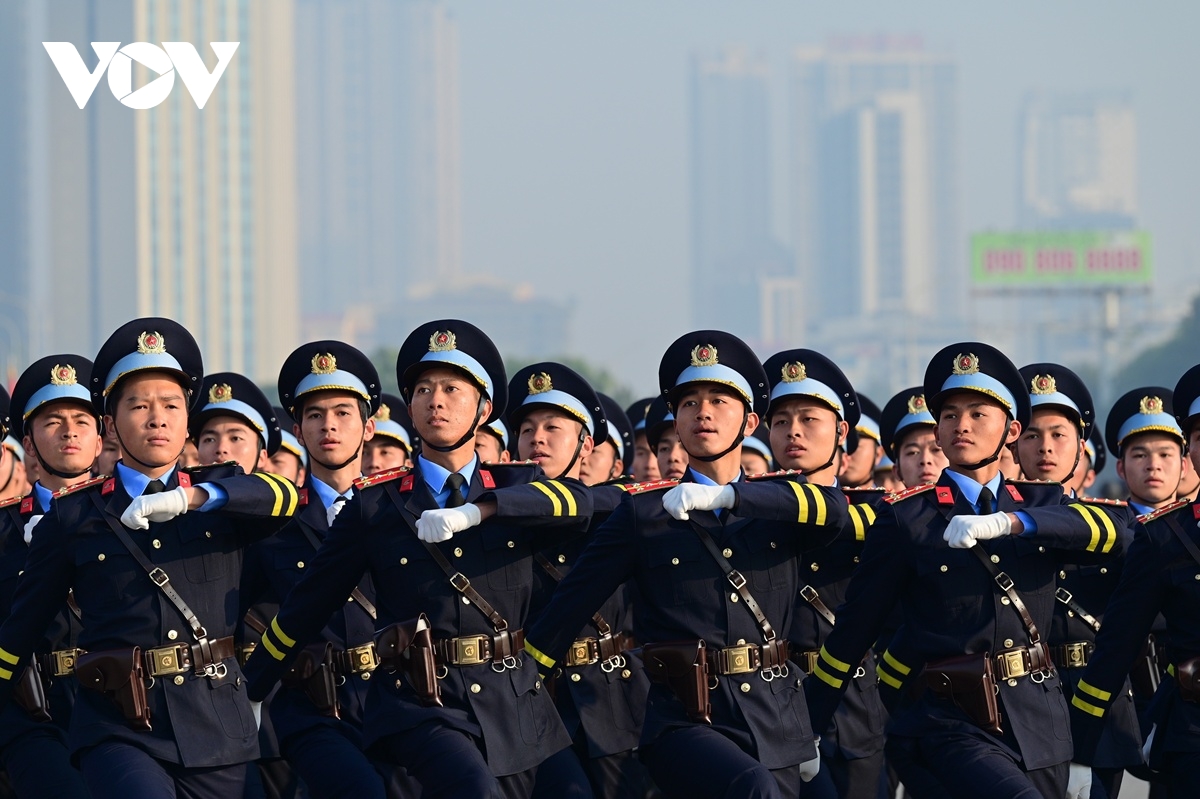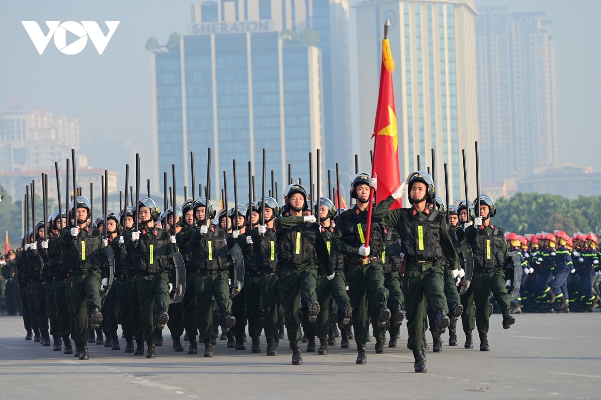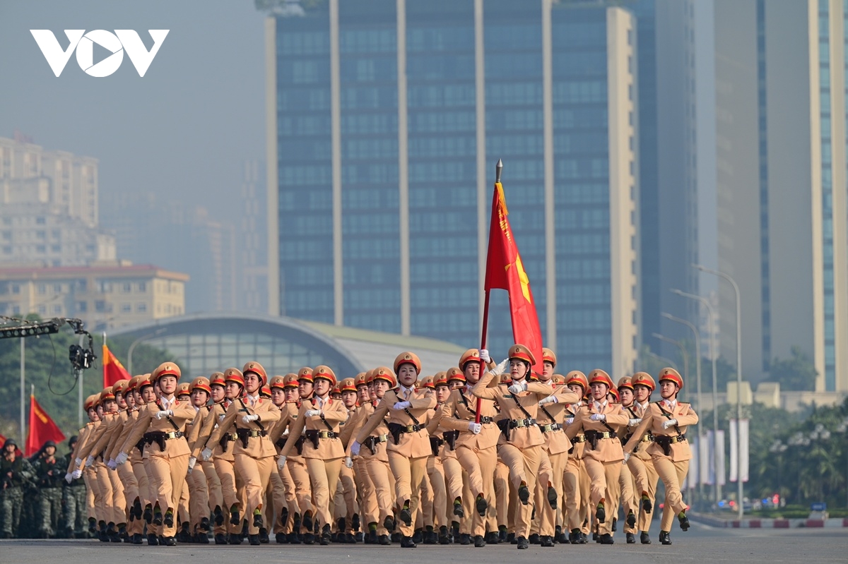 Tham gia diễu hành duyệt đội ngũ là các khối quen thuộc như Cảnh sát nhân dân, An ninh nhân dân, nữ CSGT...