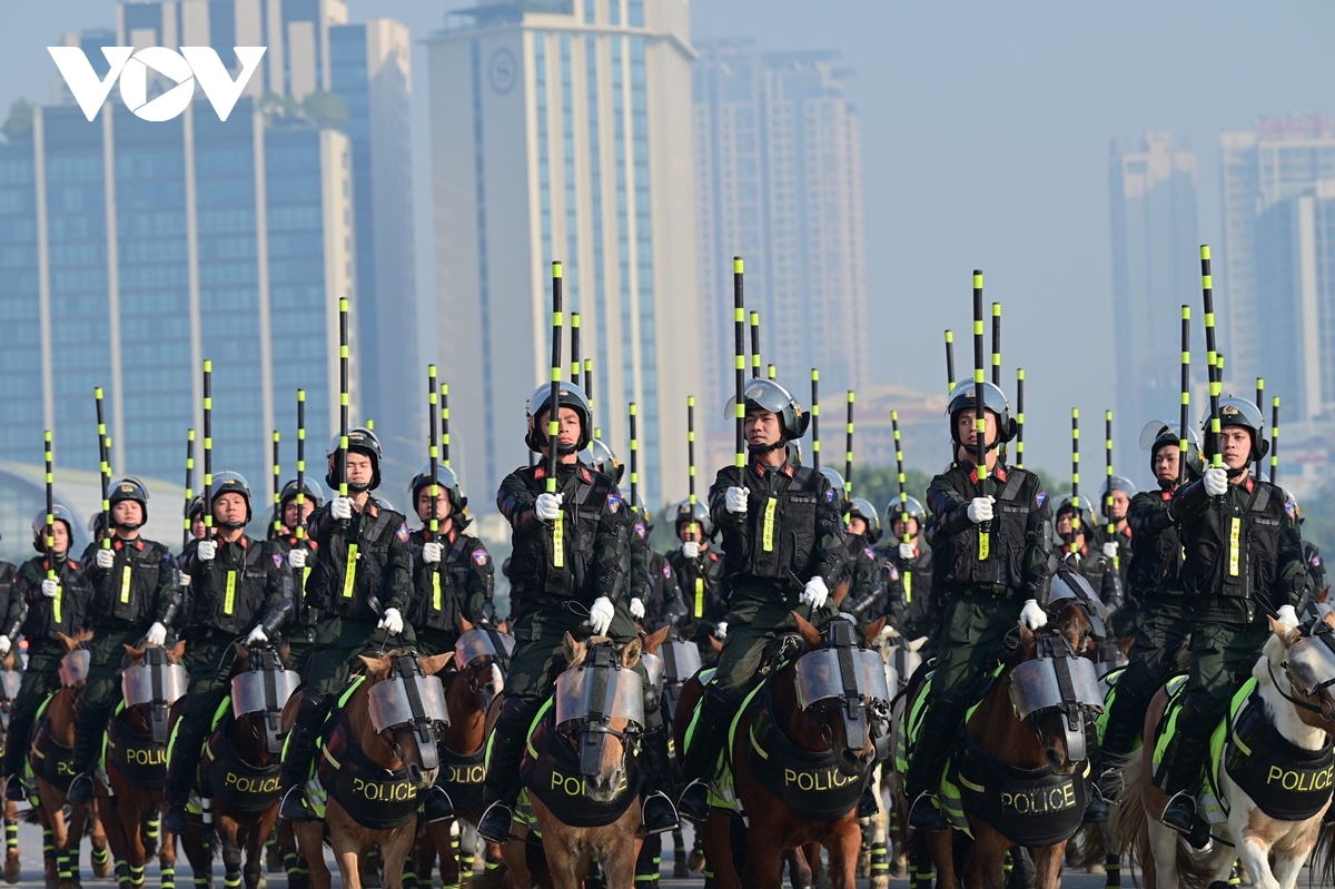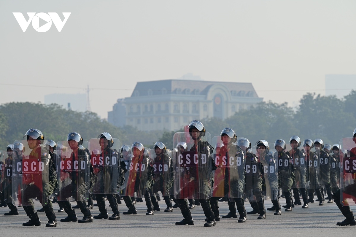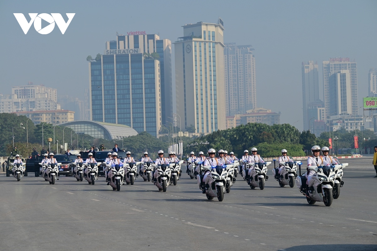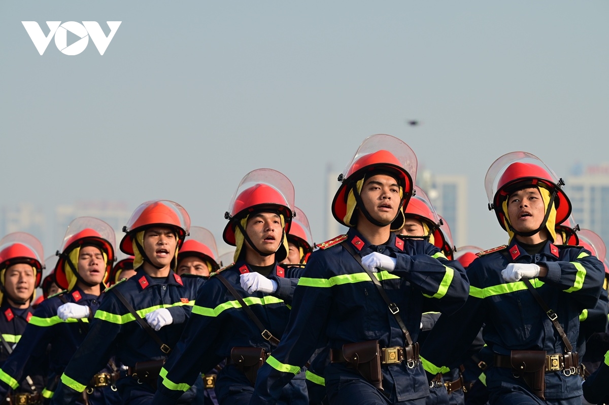 Tham gia diễu hành duyệt đội ngũ là các khối quen thuộc như Cảnh sát nhân dân, An ninh nhân dân, nữ CSGT...