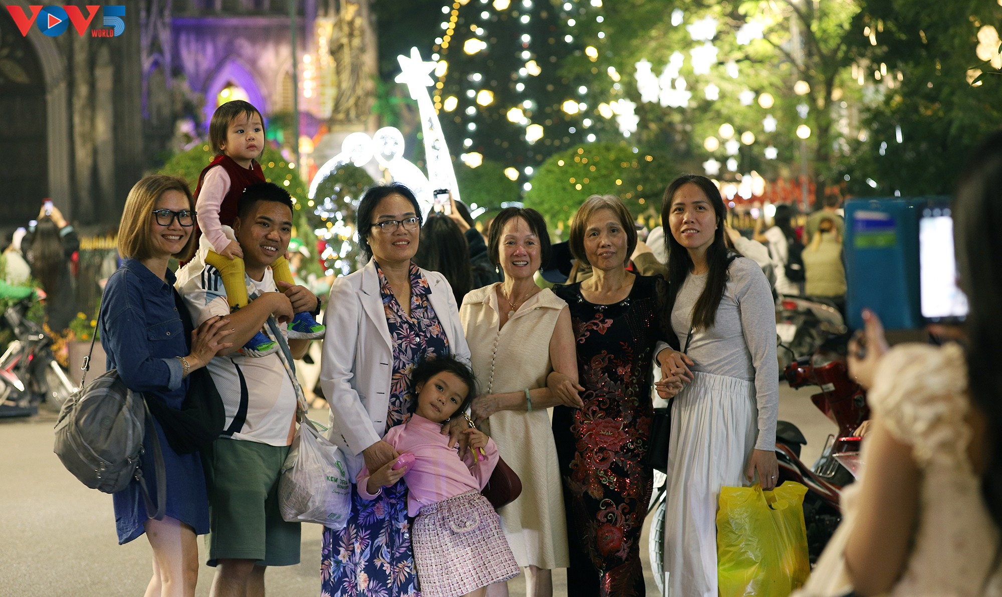 Du khách nước ngoài tận hưởng hương sắc Giáng sinh. |