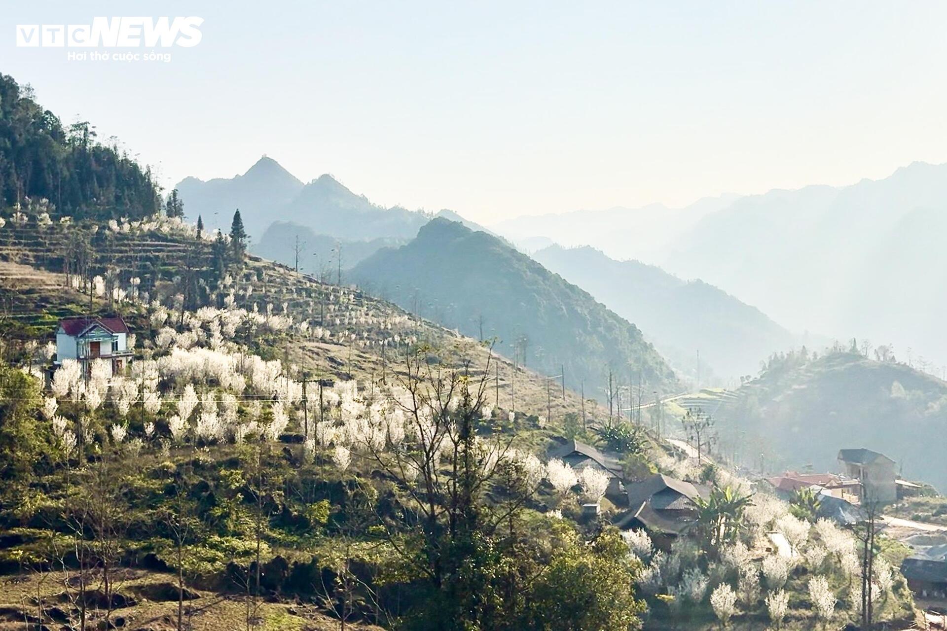 | Từ các bản làng ở Lùng Phình đến những thung lũng trải dài, sắc trắng của hoa mận đang trở thành điểm nhấn nổi bật của vùng cao Bắc Hà những ngày xuân. |