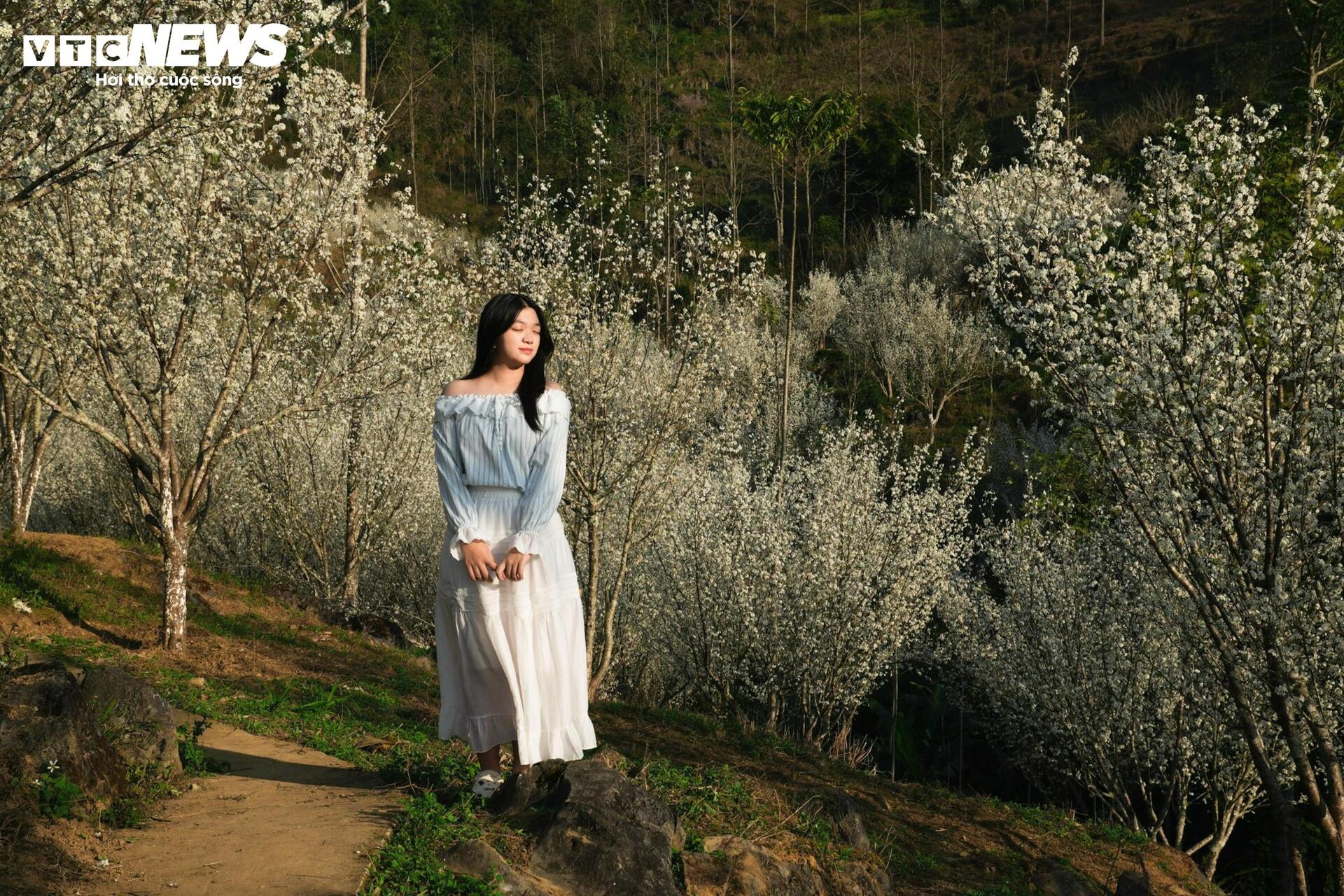 | Nhiều du khách cũng tìm đến Lùng Phình trong những ngày này để giữ lại những khoảnh khắc đẹp bên hoa mận trắng. |