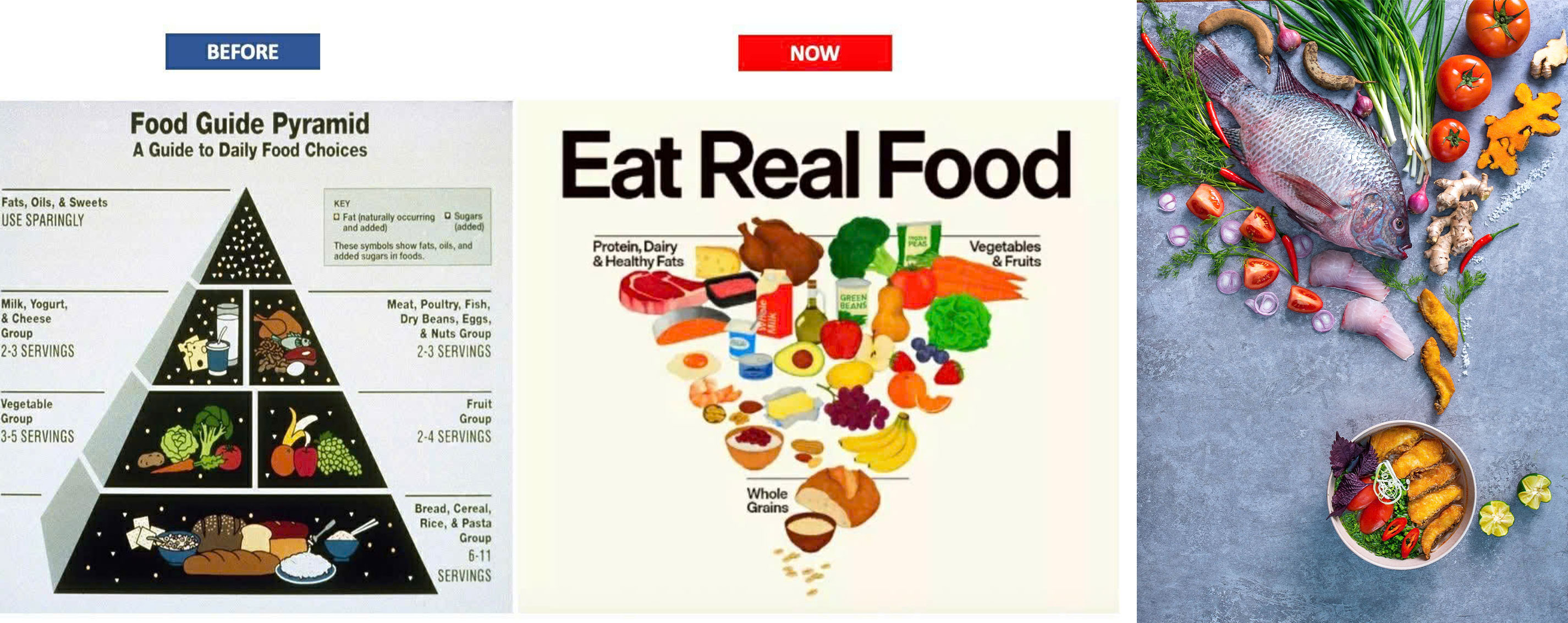 Thông điệp Eat Real Food của DGA 2025-2030 và chuẩn mực “ăn thật, sống khỏe” của QP Food từ 2021. |