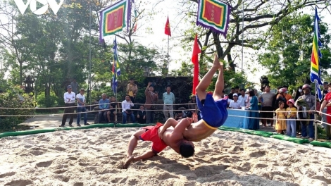 (VOV5) - Sáng 22/2 (tức mùng 6, tháng Giêng, năm Bính Ngọ), tại đình làng Thủ Lễ, xã Quảng Điền, thành phố Huế, khai hội vật truyền thống làng Thủ Lễ, thu hút đông đảo người dân và du khách đến xem, cổ vũ.